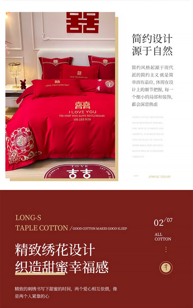 当前位置: 91家纺网 > 商品网购 > 床品套件 > 四件套 > 婚庆四件套 > 洽想家 2025新款亲肤棉磨毛刺绣婚庆四件套多件套 喜情缘(磨毛款)