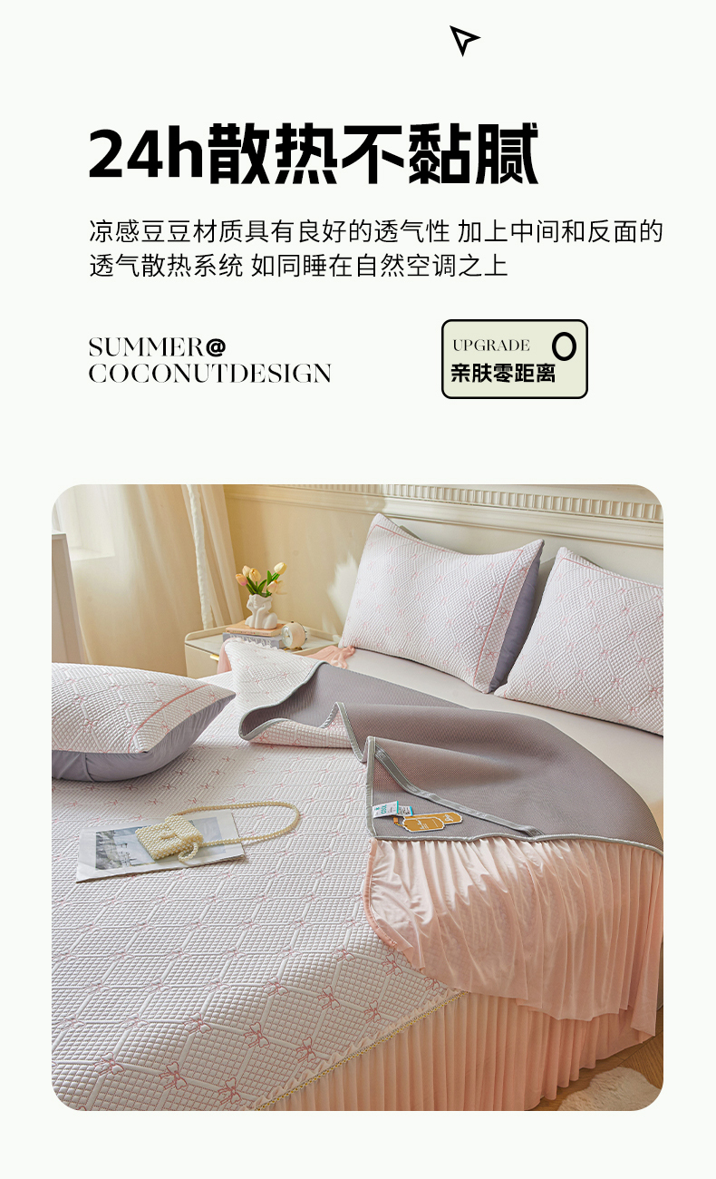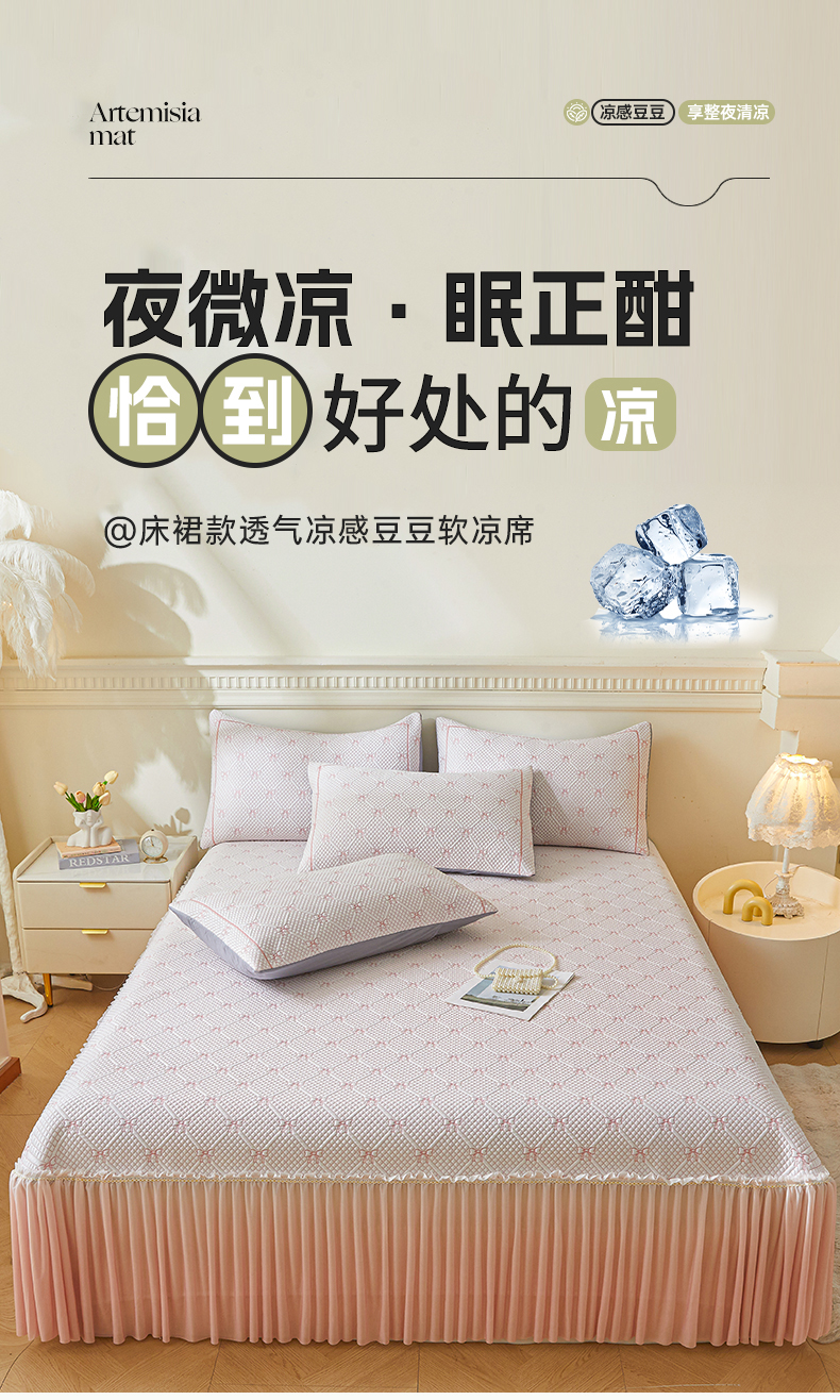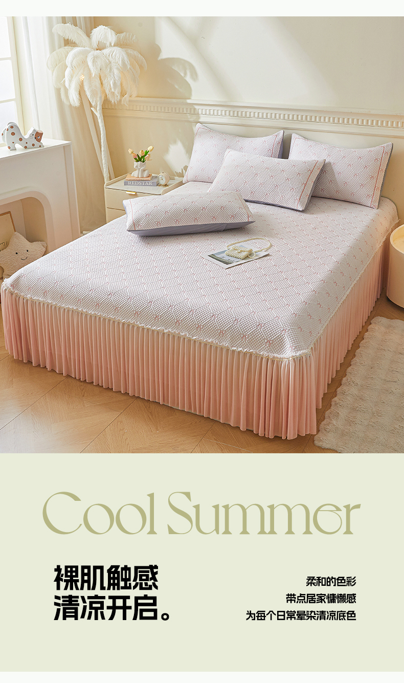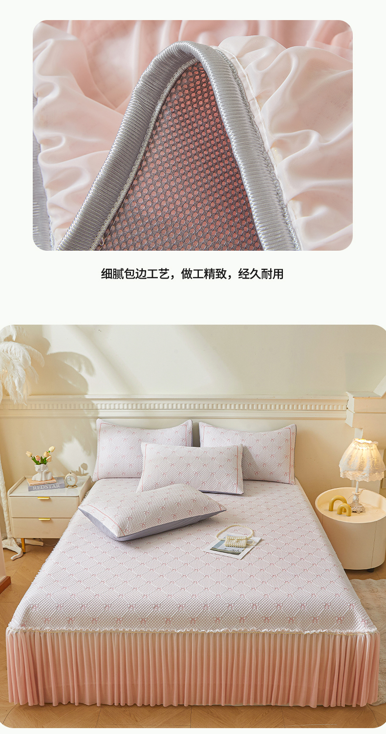 商品名称:罗艺轩 2025新款床裙款透气凉感豆豆软凉席席子 梦蝶-粉