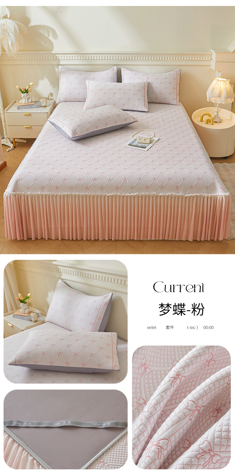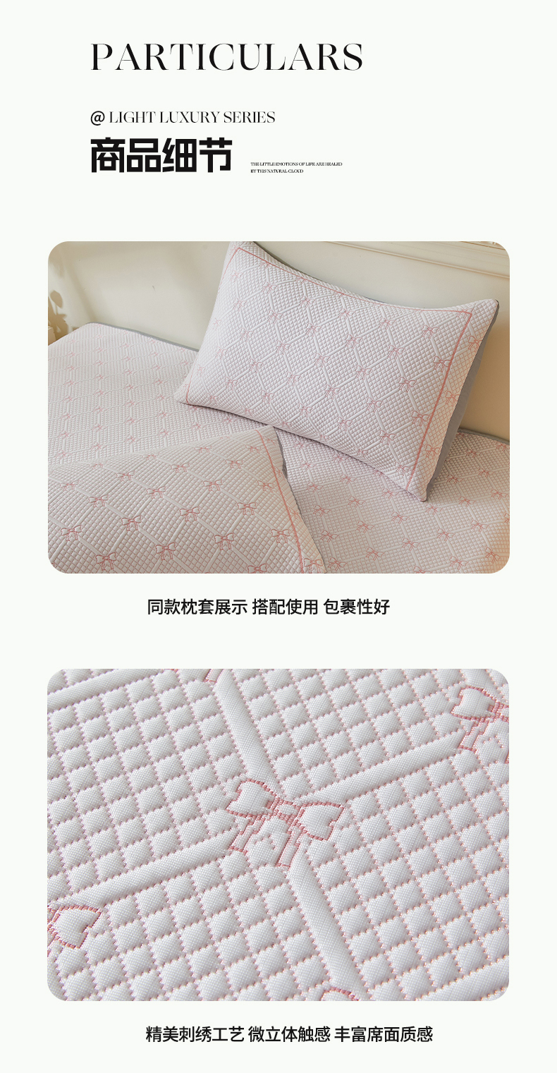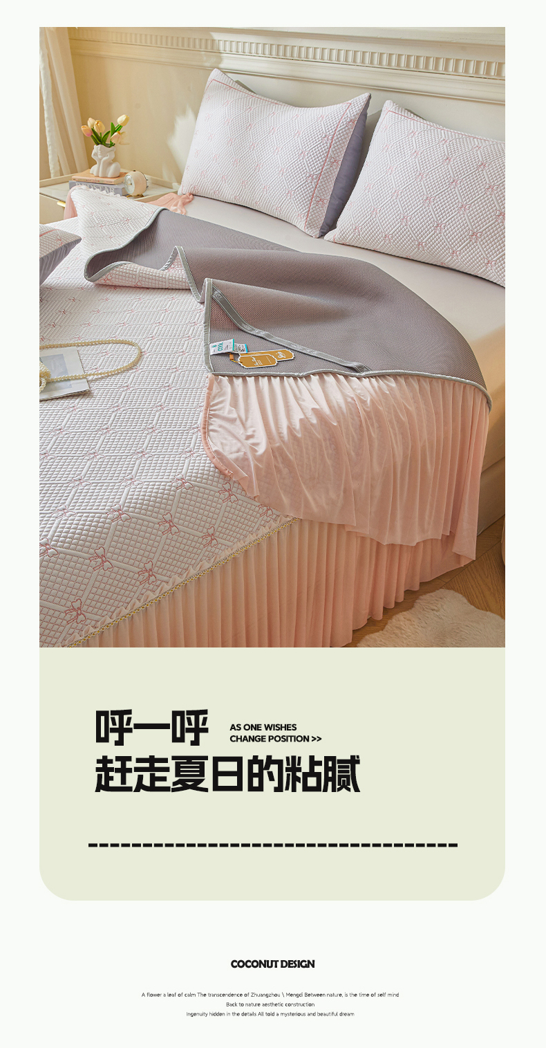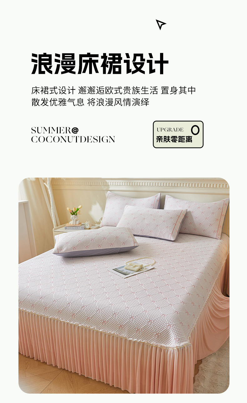商品名称:罗艺轩 2025新款床裙款透气凉感豆豆软凉席席子 梦蝶-粉