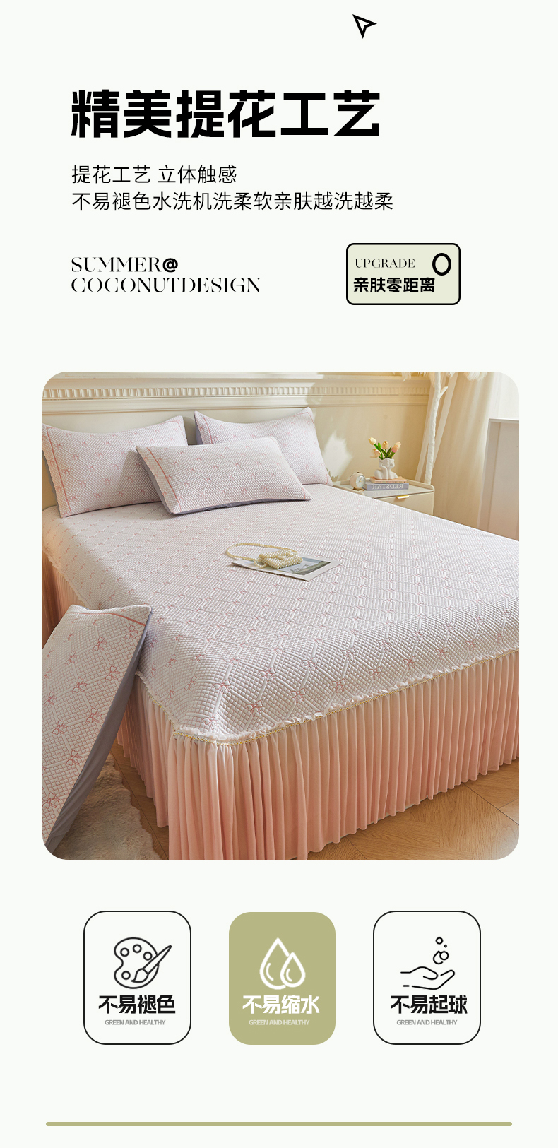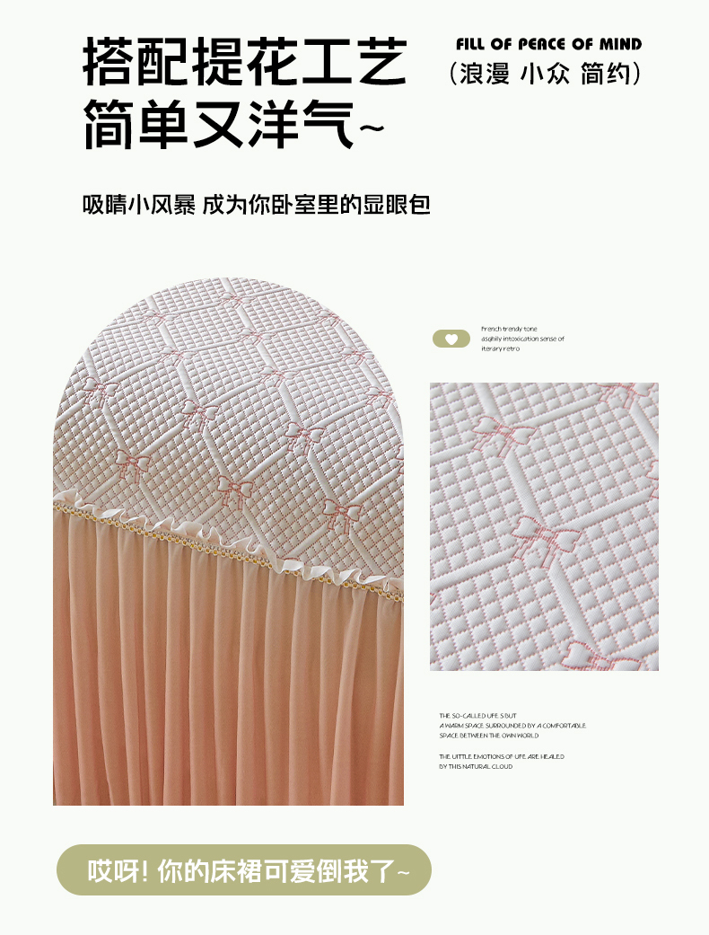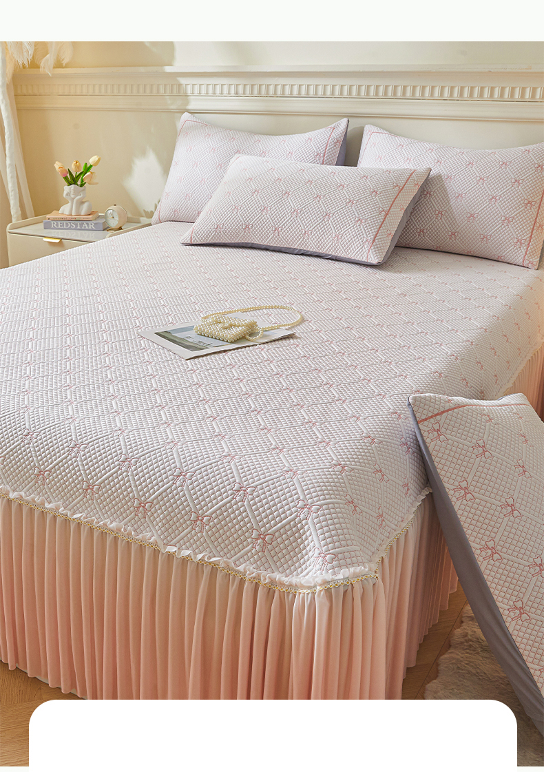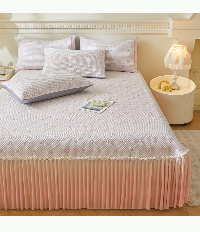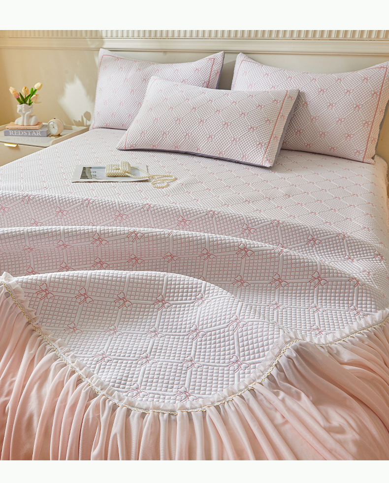 商品名称:罗艺轩 2025新款床裙款透气凉感豆豆软凉席席子 梦蝶-粉