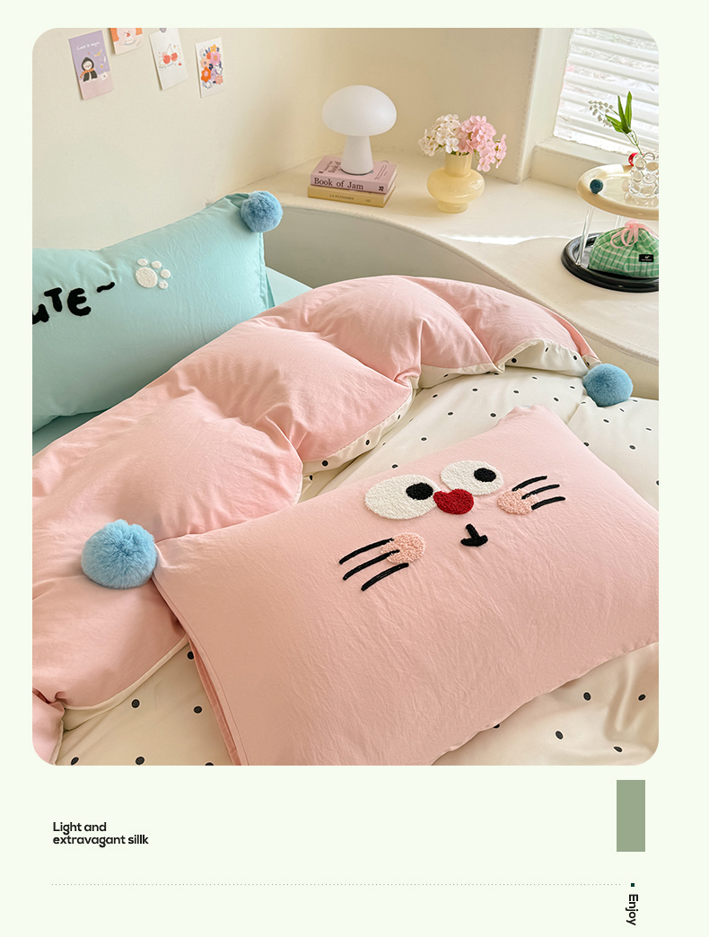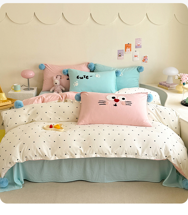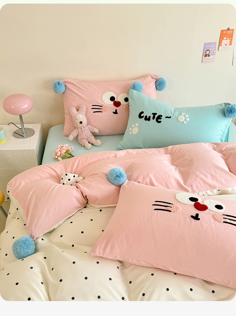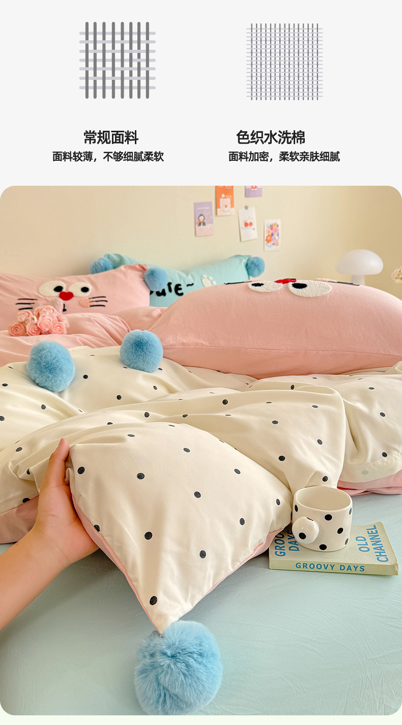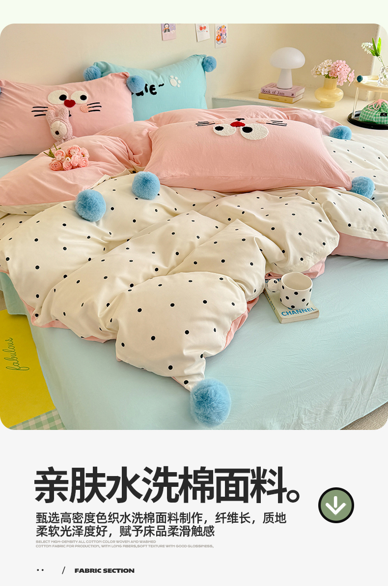 (总)多品家纺 2025新款ins奶油风刺绣枕套毛球款水洗棉四件套,洛熙,梦幻甜心,卿本佳人,月光恋语