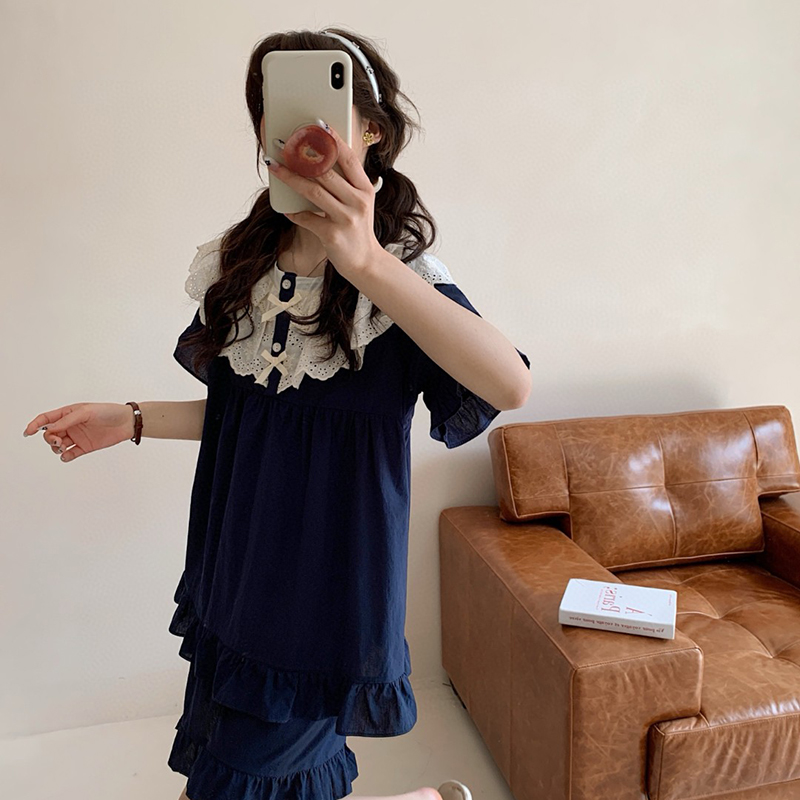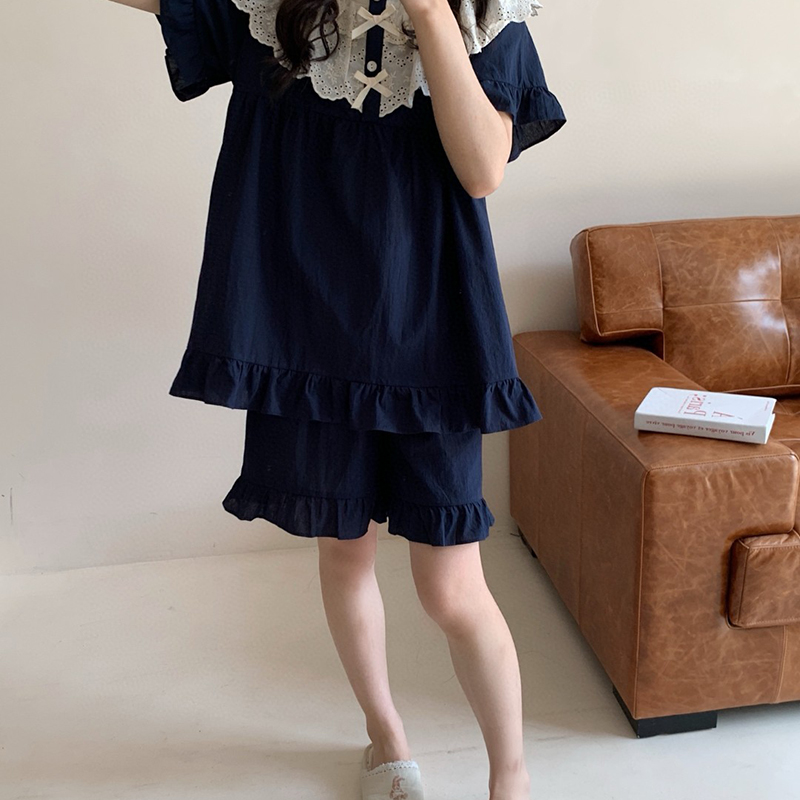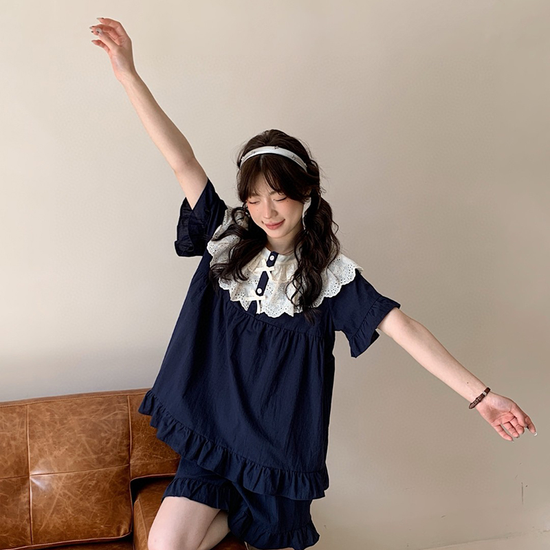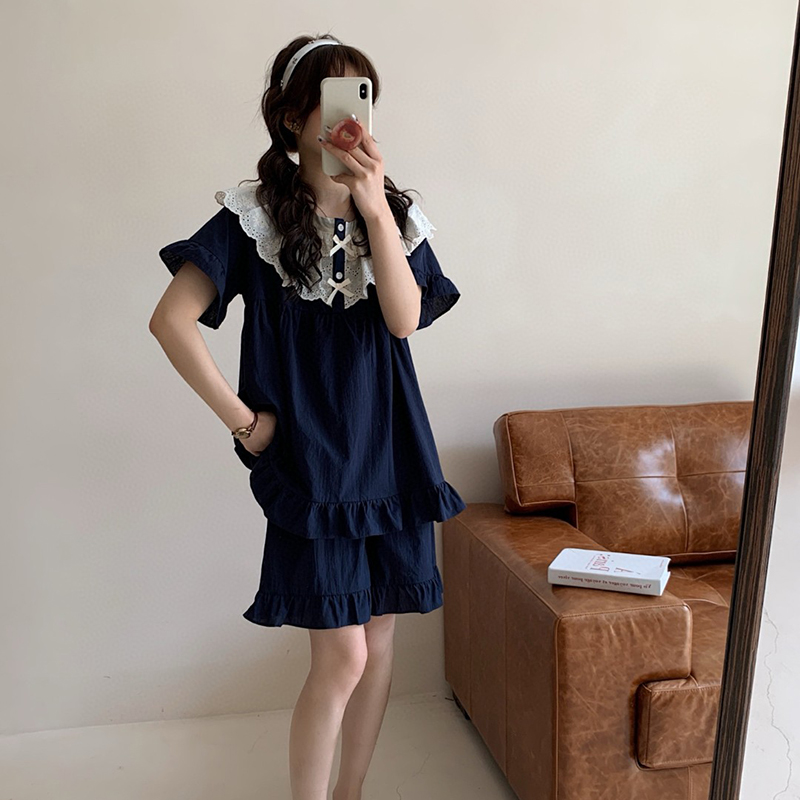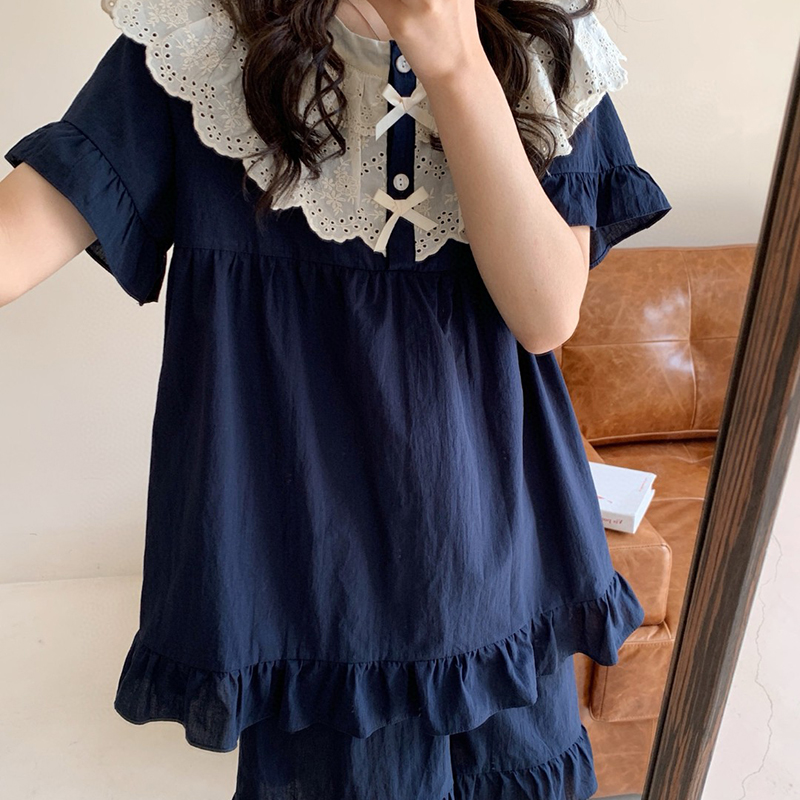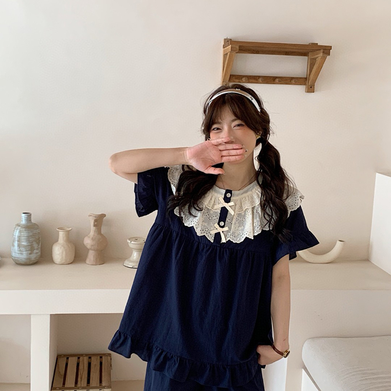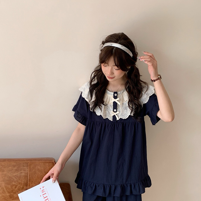 (总)妍景家居生活馆 2025新款25655-蕾丝花边蝴蝶结圆领套装