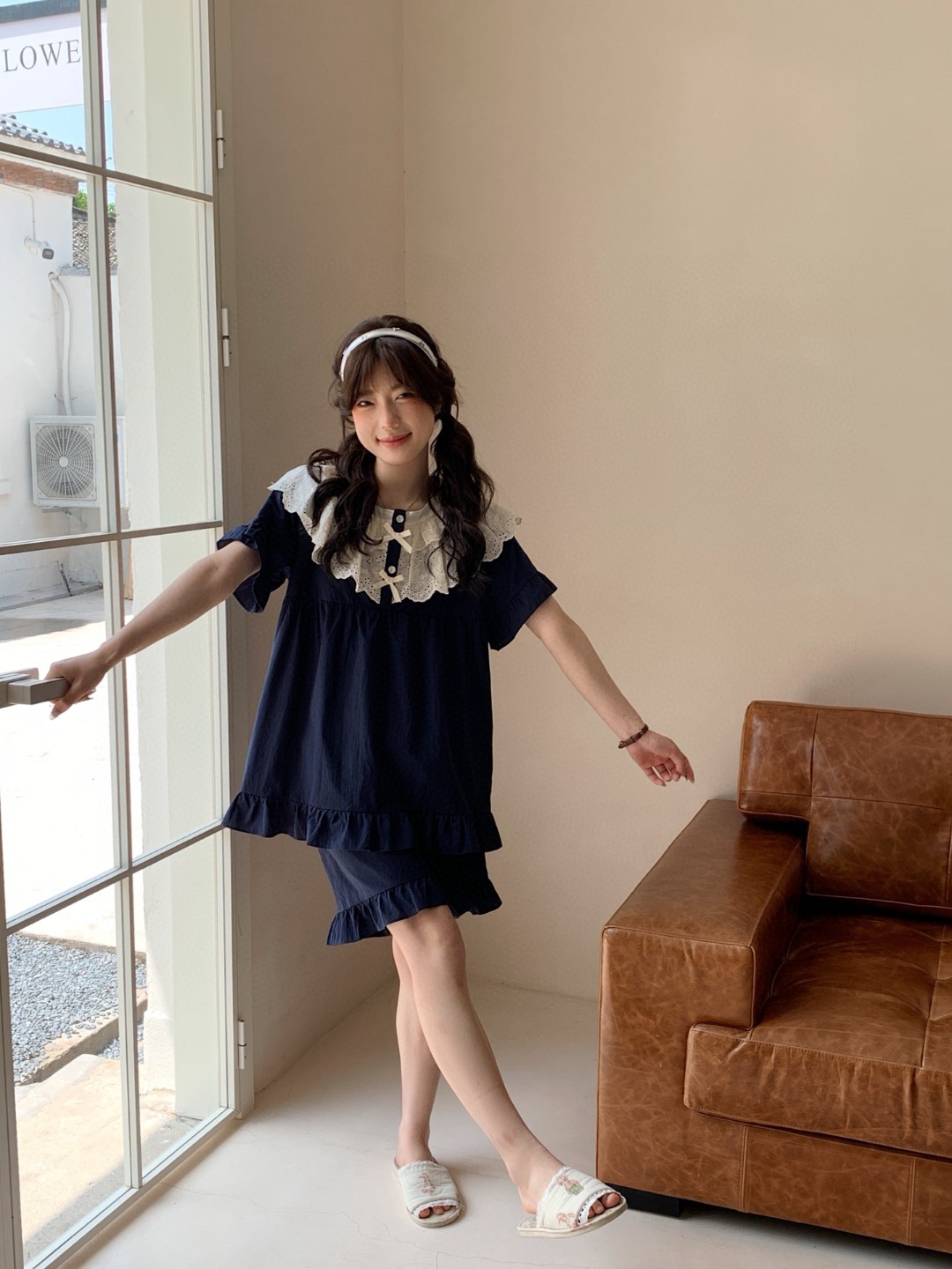 商品名称:(总)妍景家居生活馆 2025新款25655-蕾丝花边蝴蝶结圆领套装