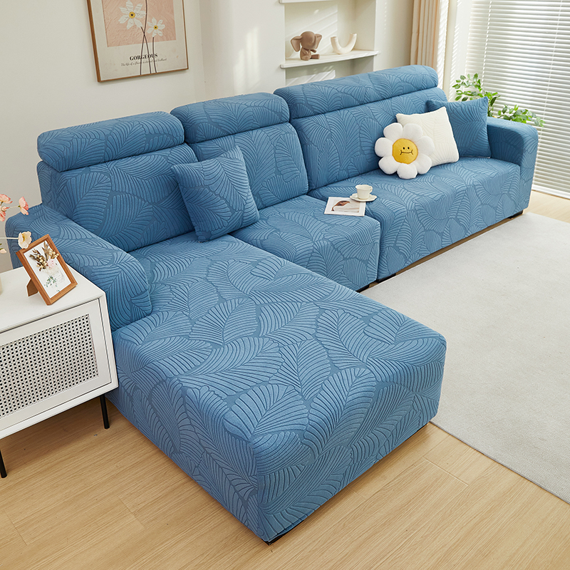 商品名称:丝绮鹿 2025新款雕花绒大叶子沙发套松紧款(贵妃图) 水蓝