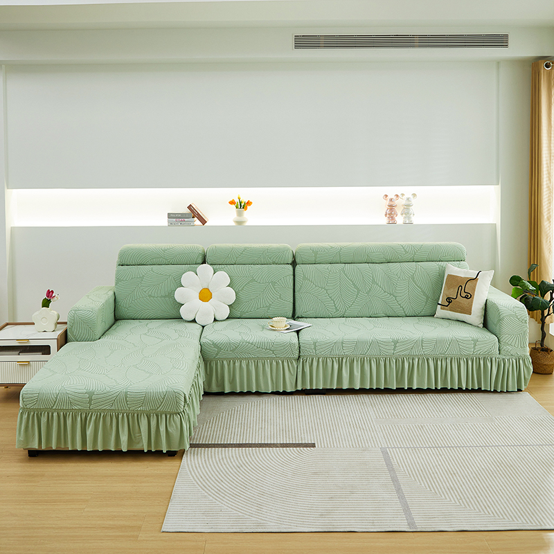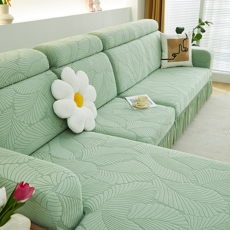 (总)丝绮鹿 2025新款雕花绒大叶子沙发套裙边款(贵妃图)