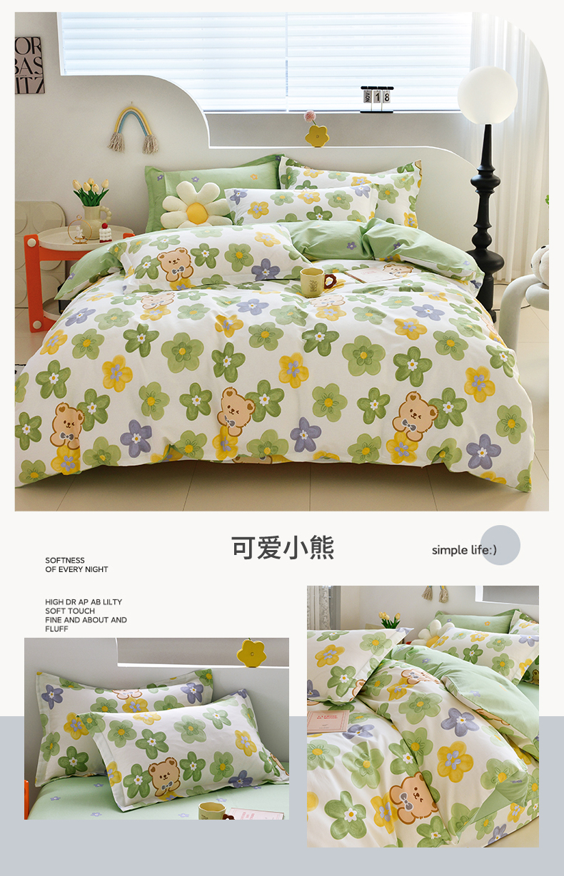 (总)登登 2024新款直播爆款清新风纯棉全棉三四件套,一见倾心,佳境,可爱小熊,心动时分,意境花影,春日旅途,果味欧气,橙意满满,清新日记,空间悦动,花间曼舞,春日遐想,花儿朵朵,清风雅颂,至真园,春风十里,多姿彩羽,浪漫花语,紫气盛开