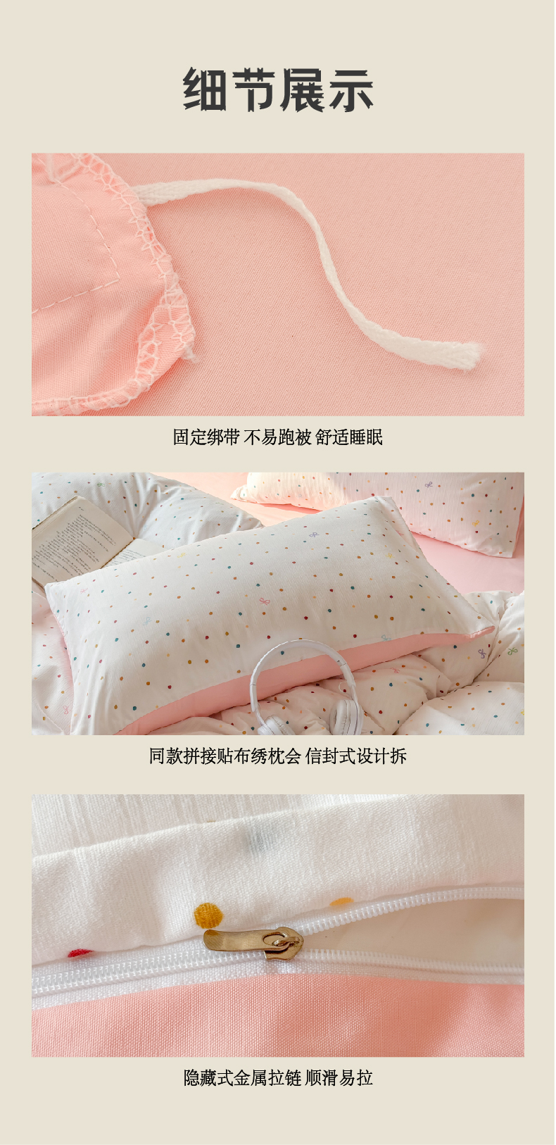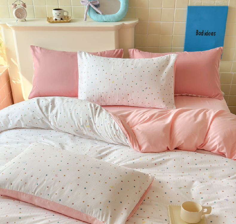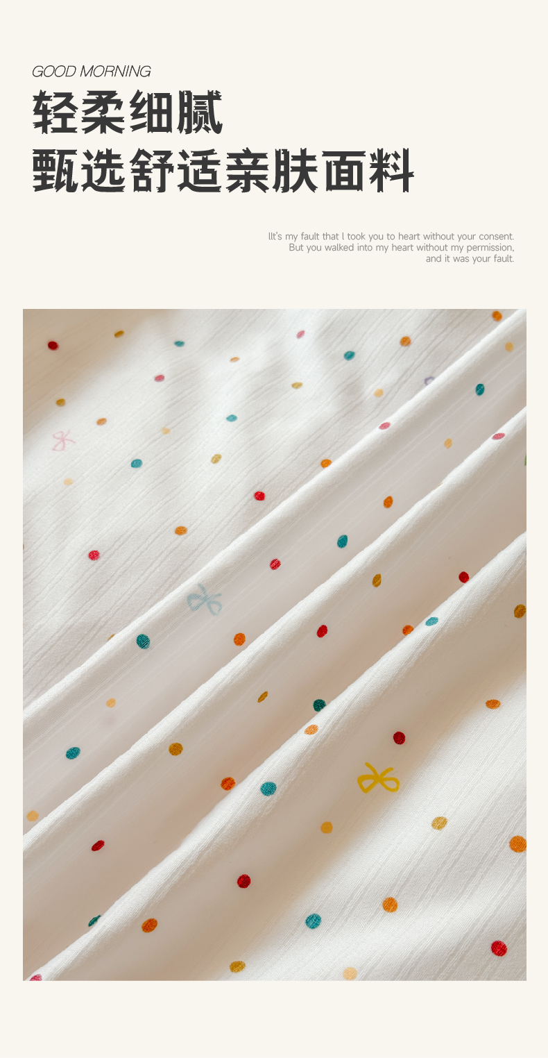 当前位置: 91家纺网 > 商品网购 > 床品套件 > 四件套 > 其它四件套 > 可可家纺 2025新款亲肤有氧提花小竺棉四件套 彩色波点