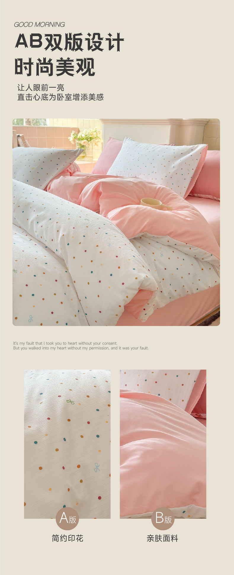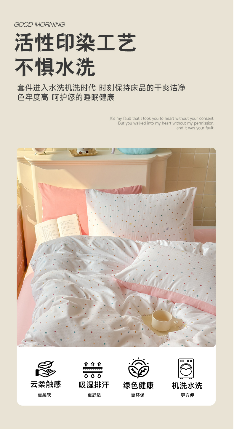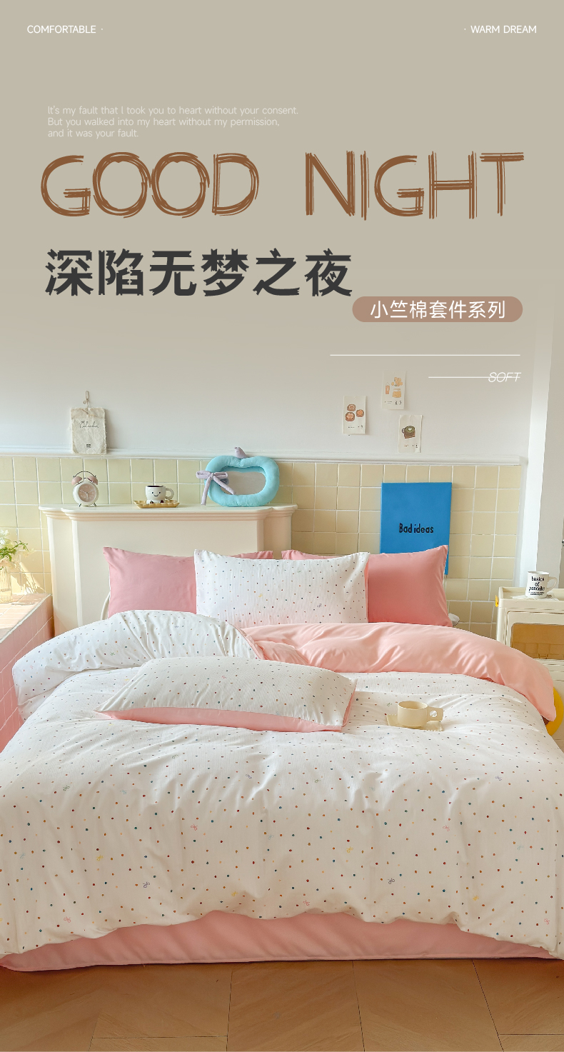 当前位置: 91家纺网 > 商品网购 > 床品套件 > 四件套 > 其它四件套 > 可可家纺 2025新款亲肤有氧提花小竺棉四件套 彩色波点