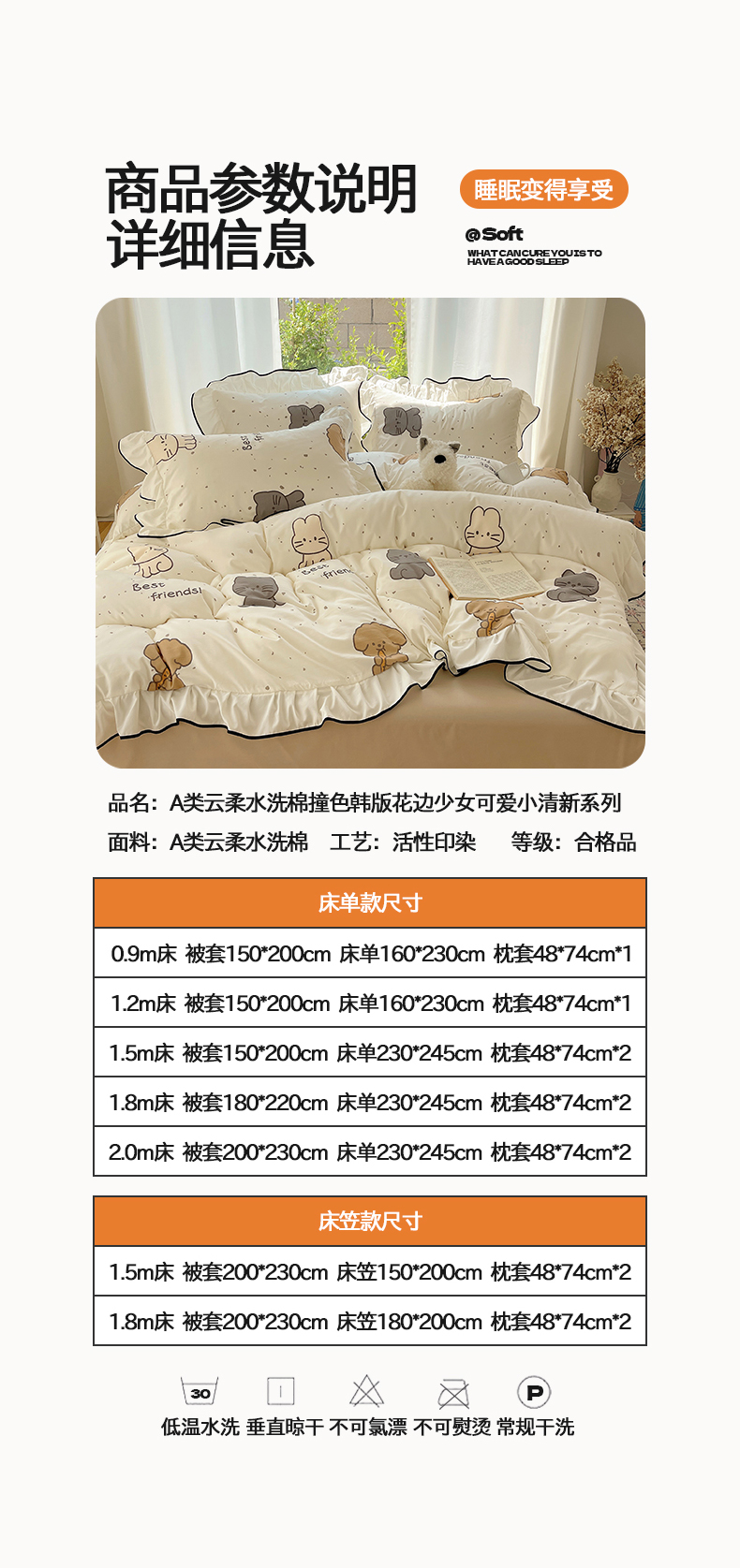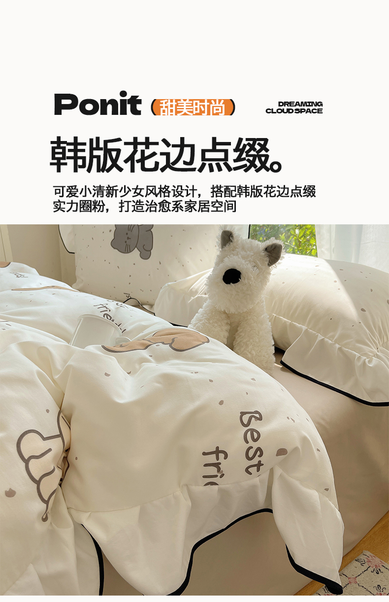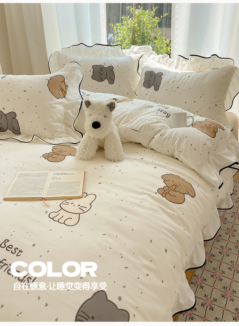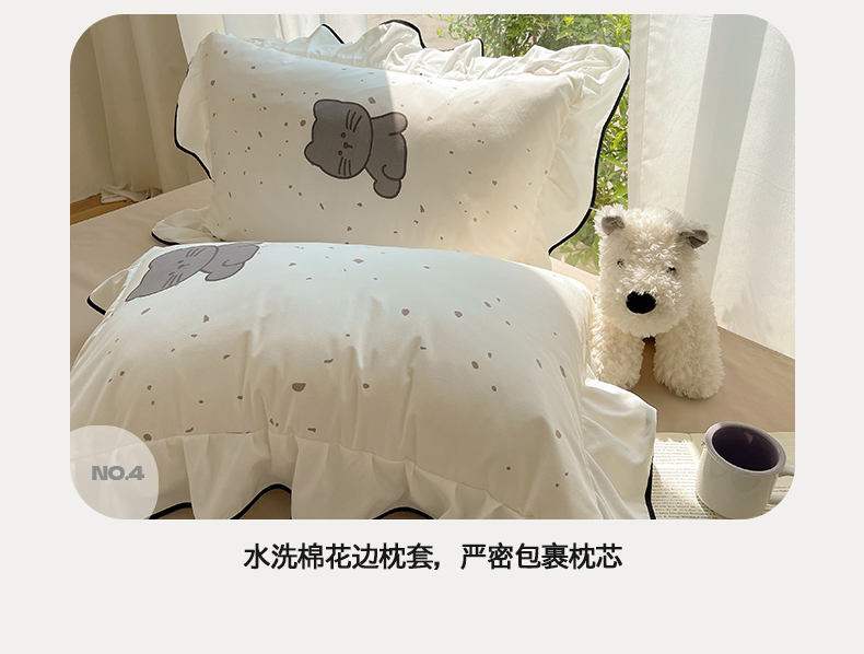 当前位置: 91家纺网 > 商品网购 > 床品套件 > 四件套 > 水洗棉四件套 > 桃心家居 2025新款A类云柔水洗棉花边四件套 水洗棉花边-黑色萌萌乐园