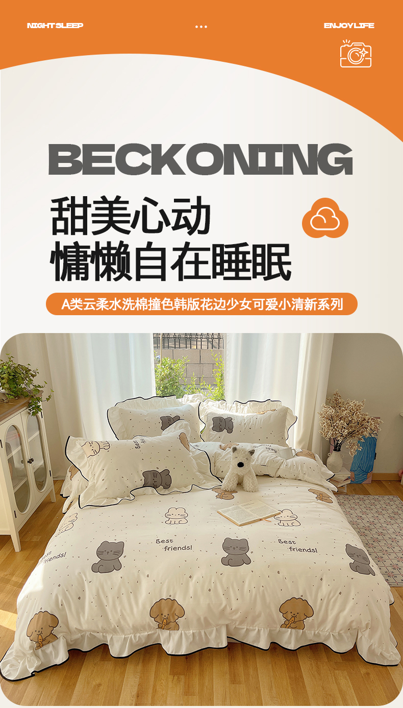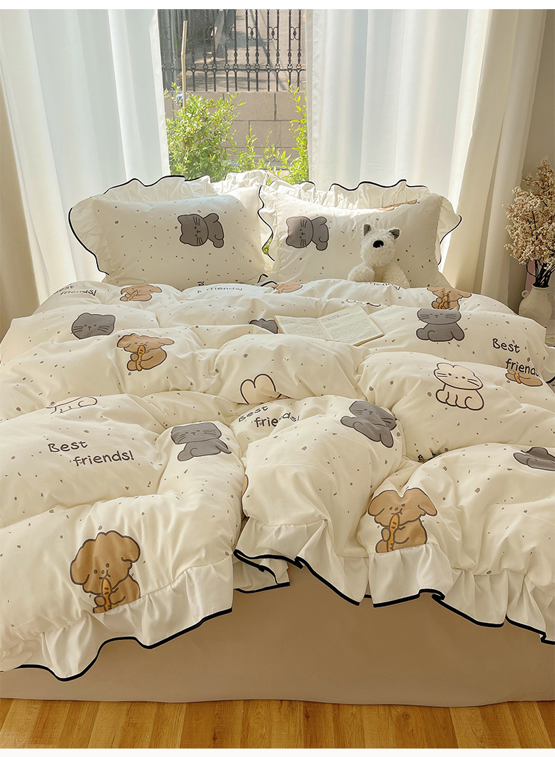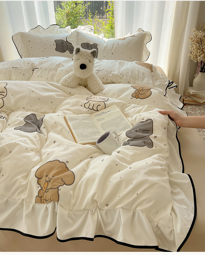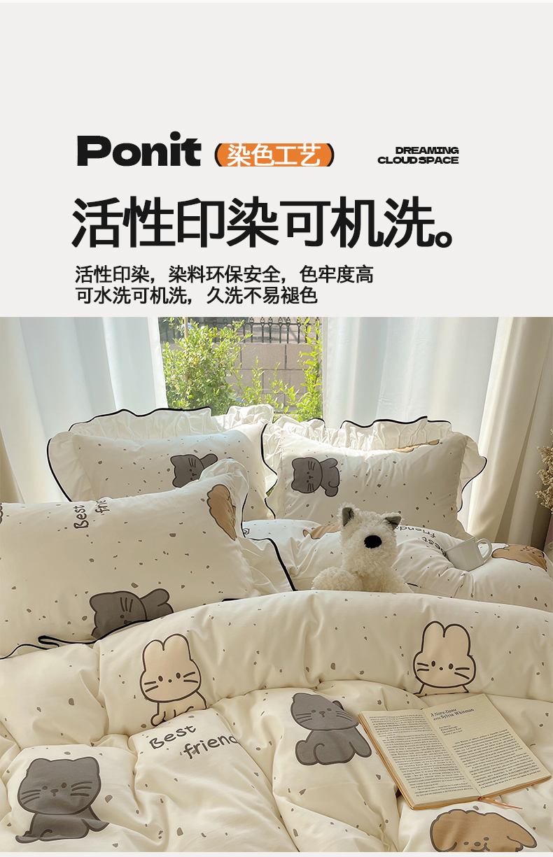 当前位置: 91家纺网 > 商品网购 > 床品套件 > 四件套 > 水洗棉四件套 > 桃心家居 2025新款A类云柔水洗棉花边四件套 水洗棉花边-黑色萌萌乐园