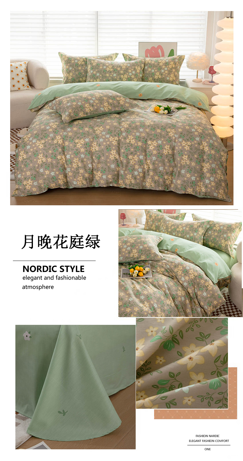 当前位置: 91家纺网 > 商品网购 > 床品套件 > 四件套 > 全棉普通四件套 > 贝兰仙奴 2025春夏新款全棉纯棉12868印花四件套 月晚花庭绿