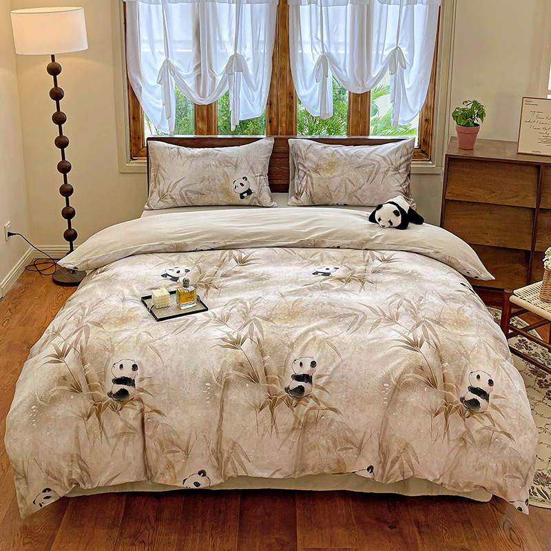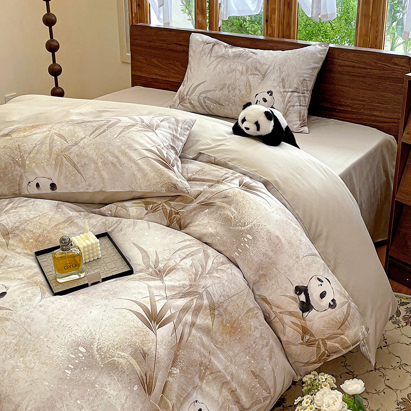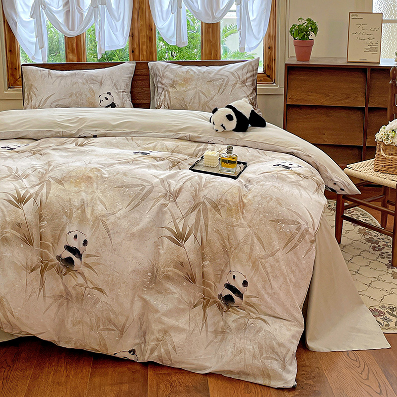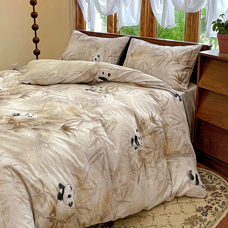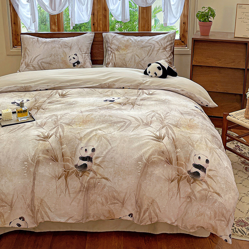 商品名称:耀悦家纺 2025年60支纯棉印花四件套长绒棉被套床单 熊猫竹景
