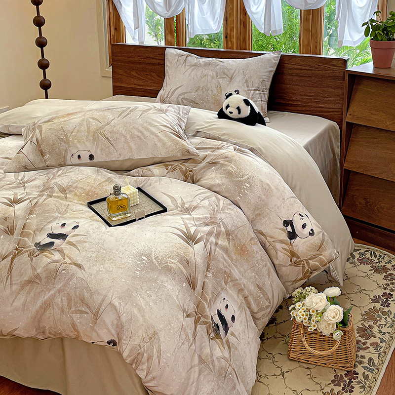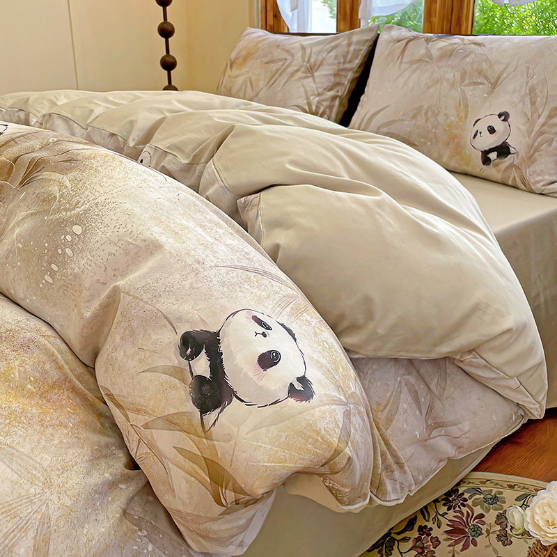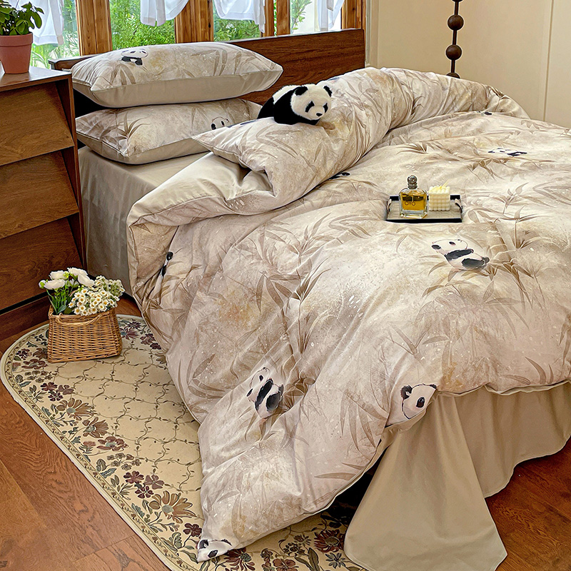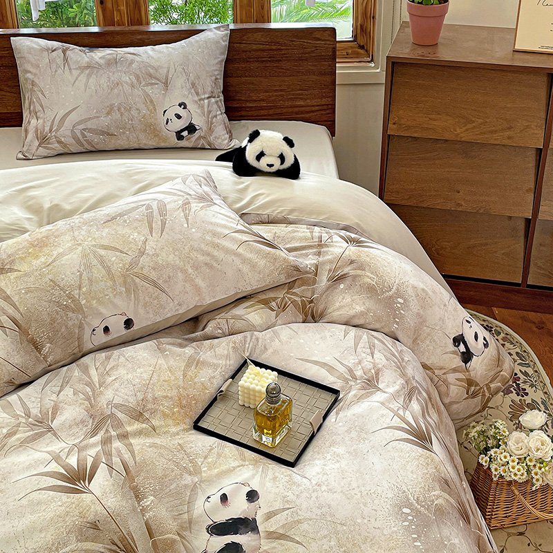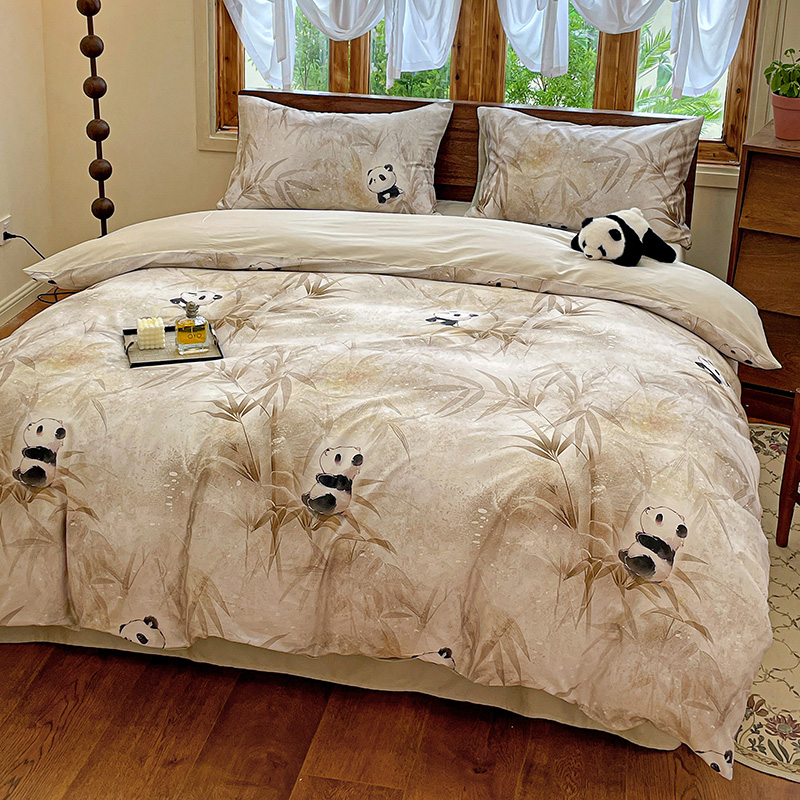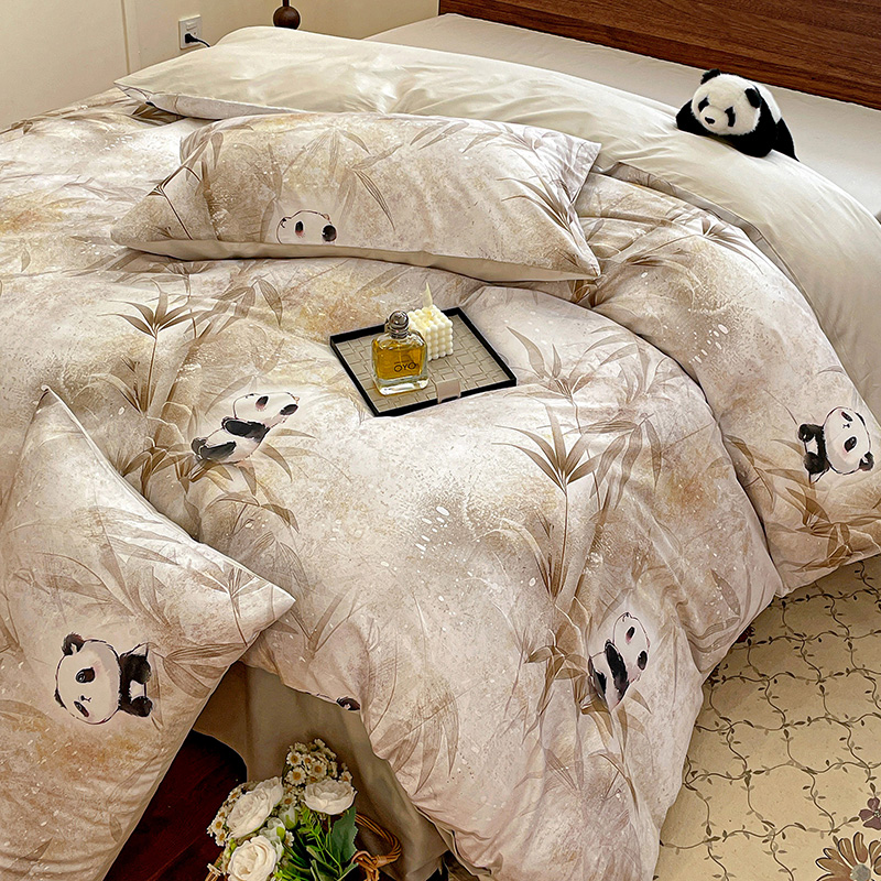 商品名称:耀悦家纺 2025年60支纯棉印花四件套长绒棉被套床单 熊猫竹景