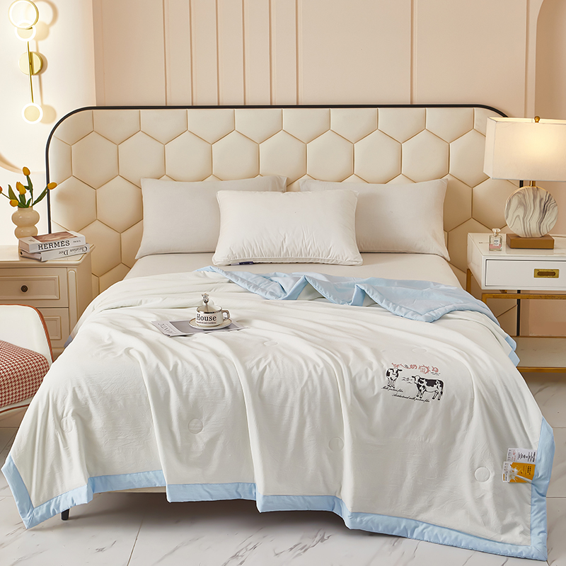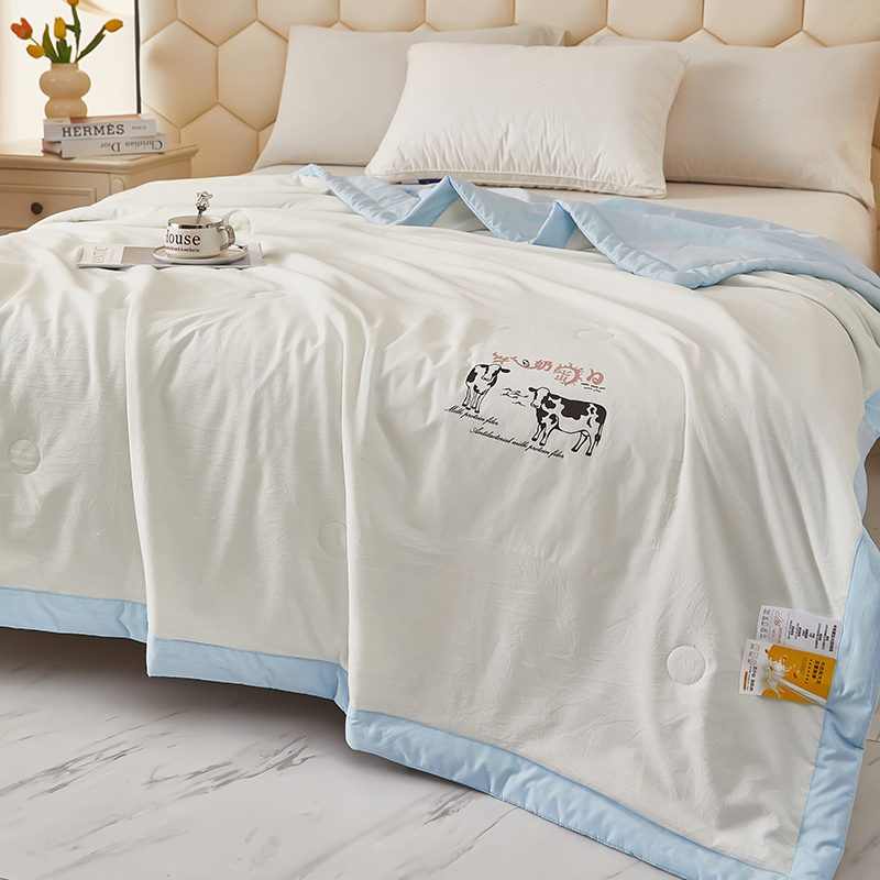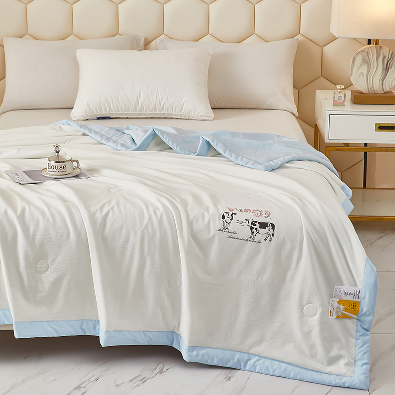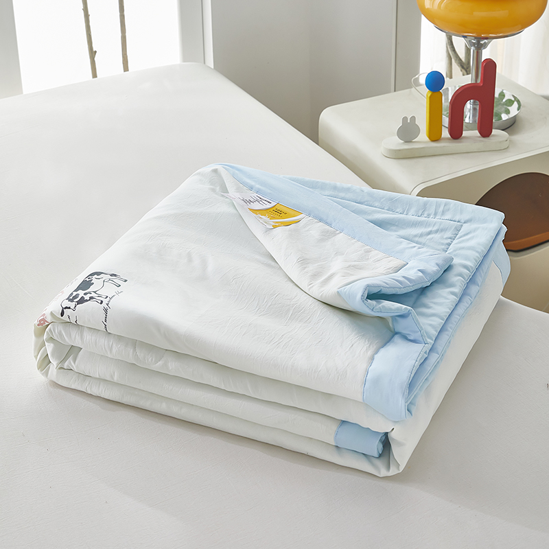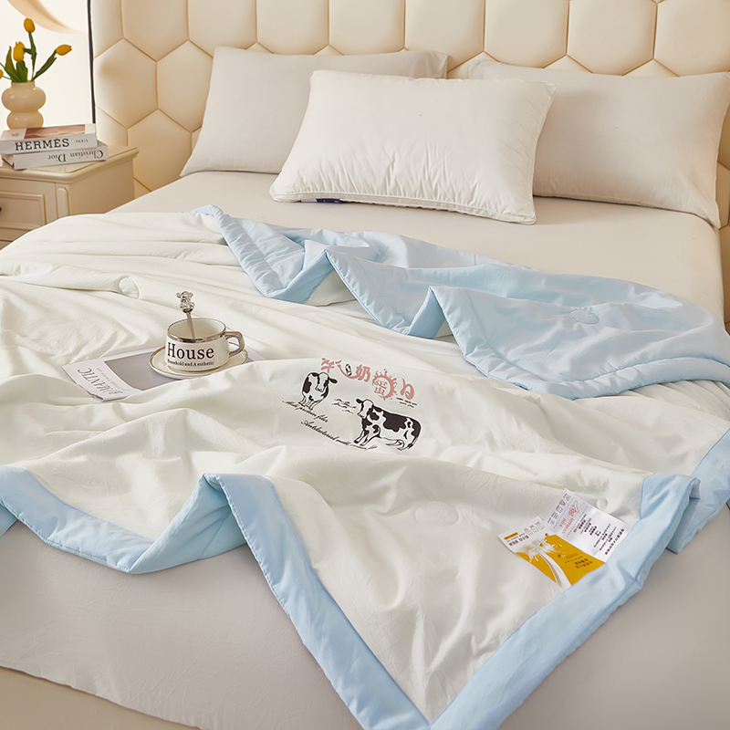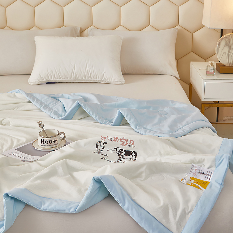 商品名称:全美家居 2025新款高克重水洗棉牛奶大豆纤维夏被 牛奶夏被蓝