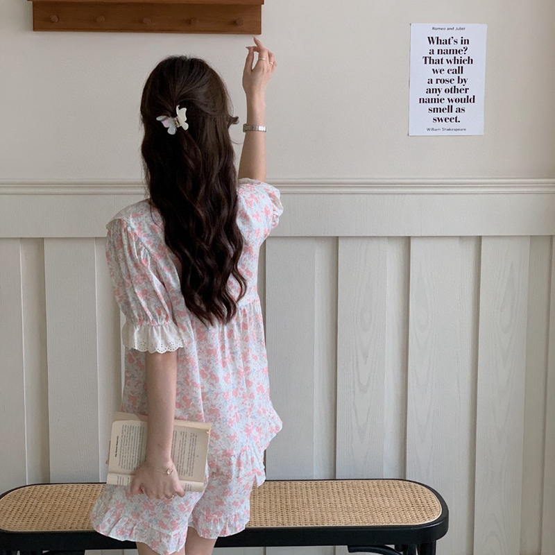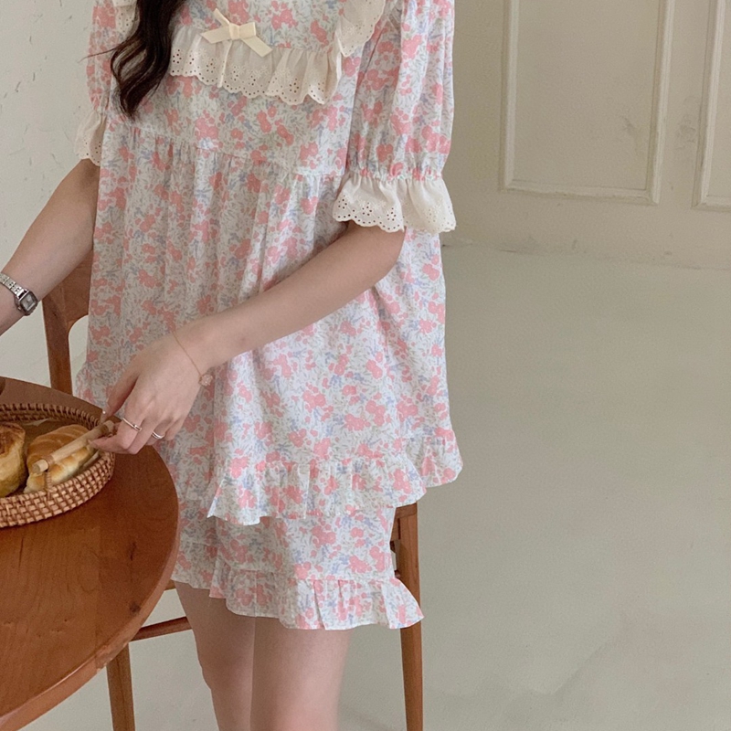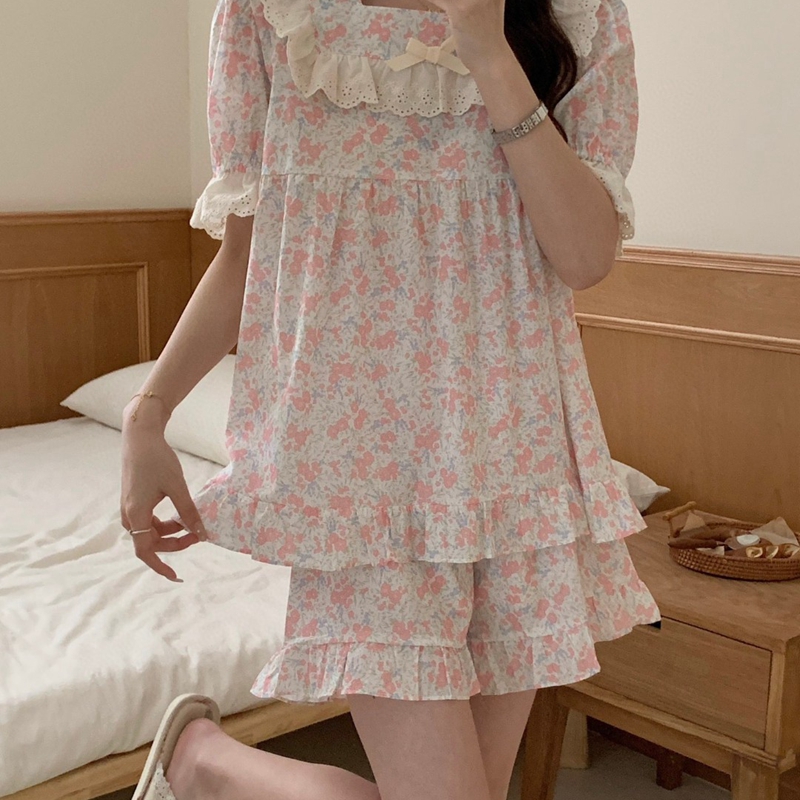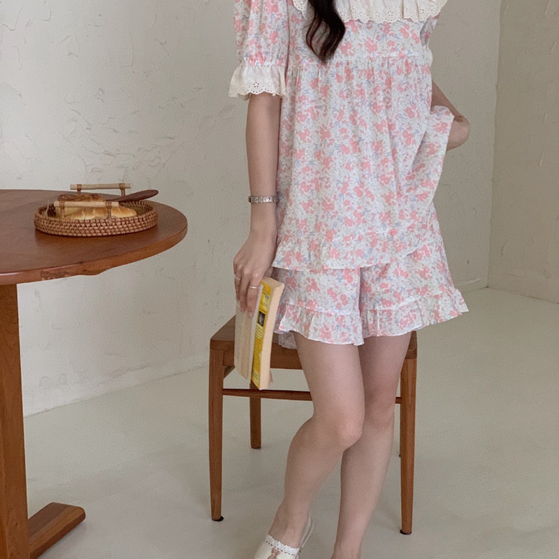 当前位置: 91家纺网 > 商品网购 > 居家日用 > 睡衣/家居服套装 > (总)妍景家居生活馆 2025新款韩系蕾丝碎花方领套装款