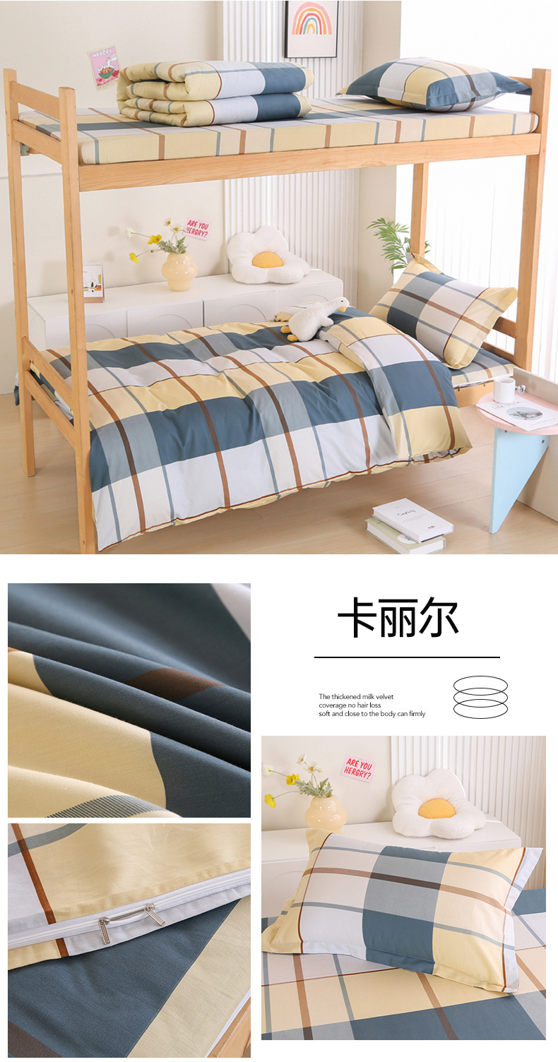 当前位置: 91家纺网 > 商品网购 > 床品套件 > 多件套 > 多件套 > 凯森家纺 2025新款斜纹加厚全棉三件套寝室学生床笠上下铺床三件套单被套150x200 格兰特
