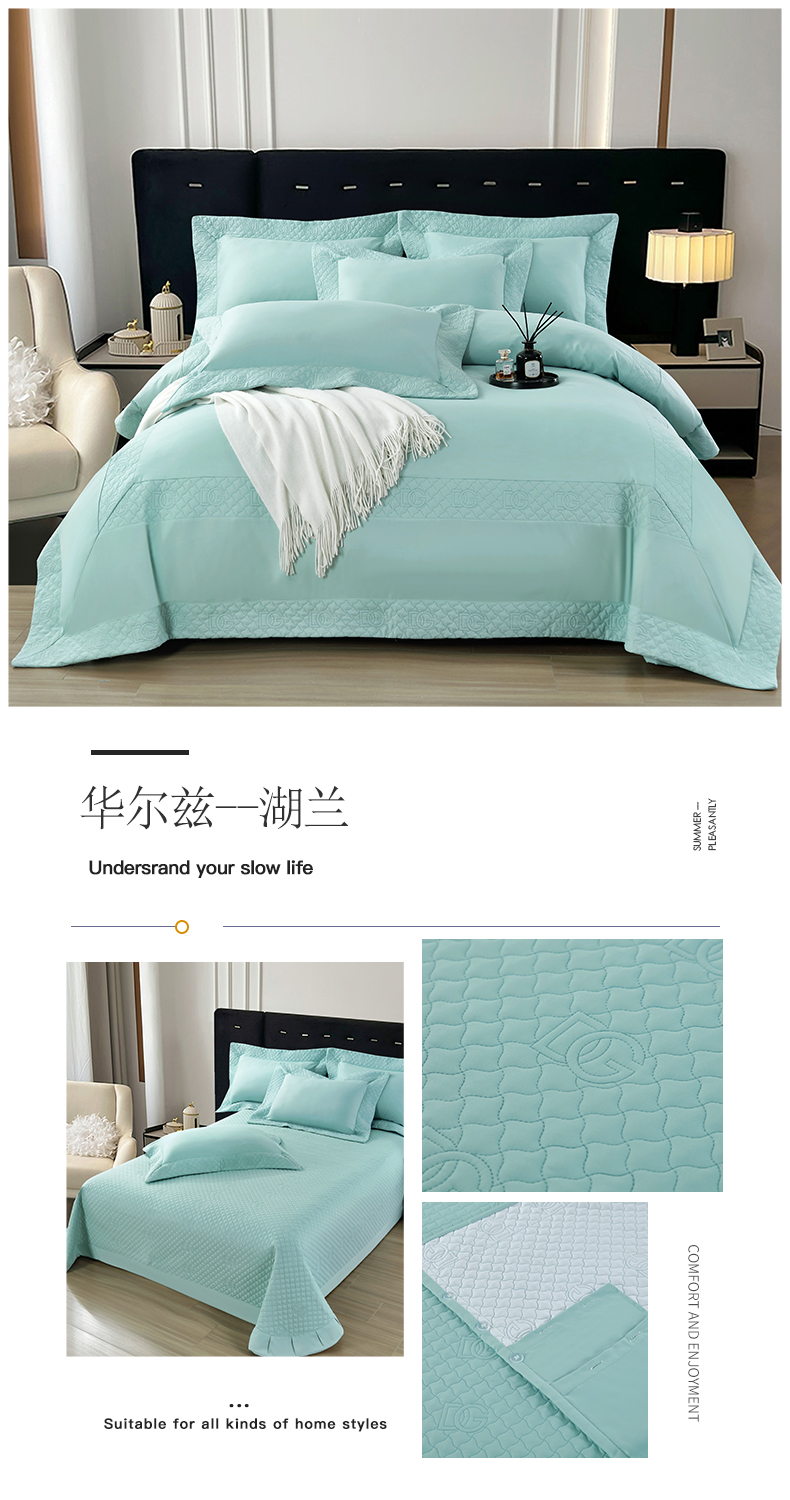 商品名称:OL家纺2025新款轻奢风氧乐棉床盖夹棉防滑四件套 华尔兹--湖兰