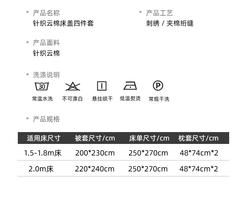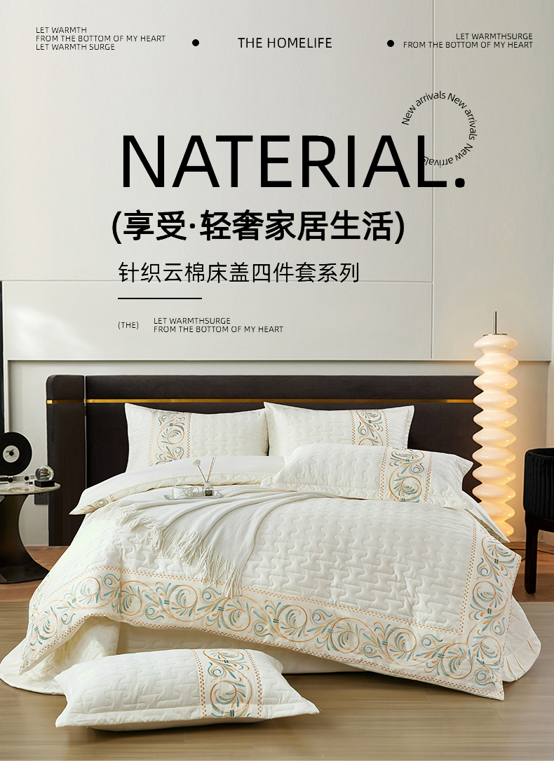 商品名称:(总)OL家纺 2025春夏新款轻奢风针织云棉床盖夹绵防滑床盖款四件套