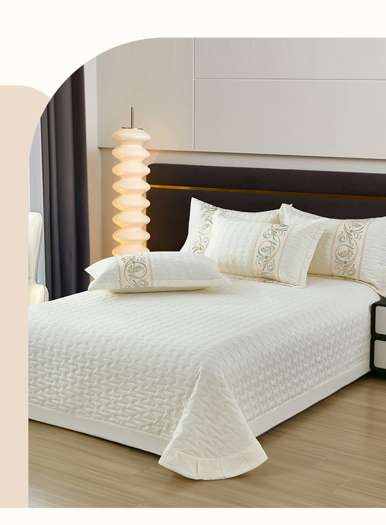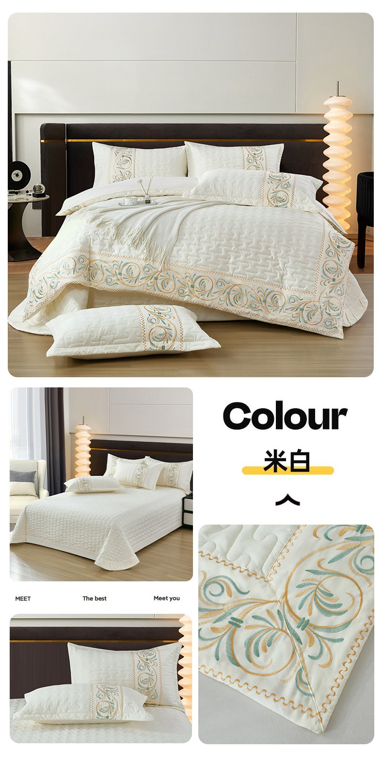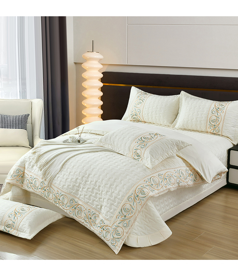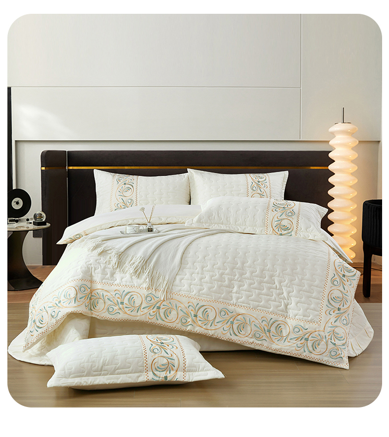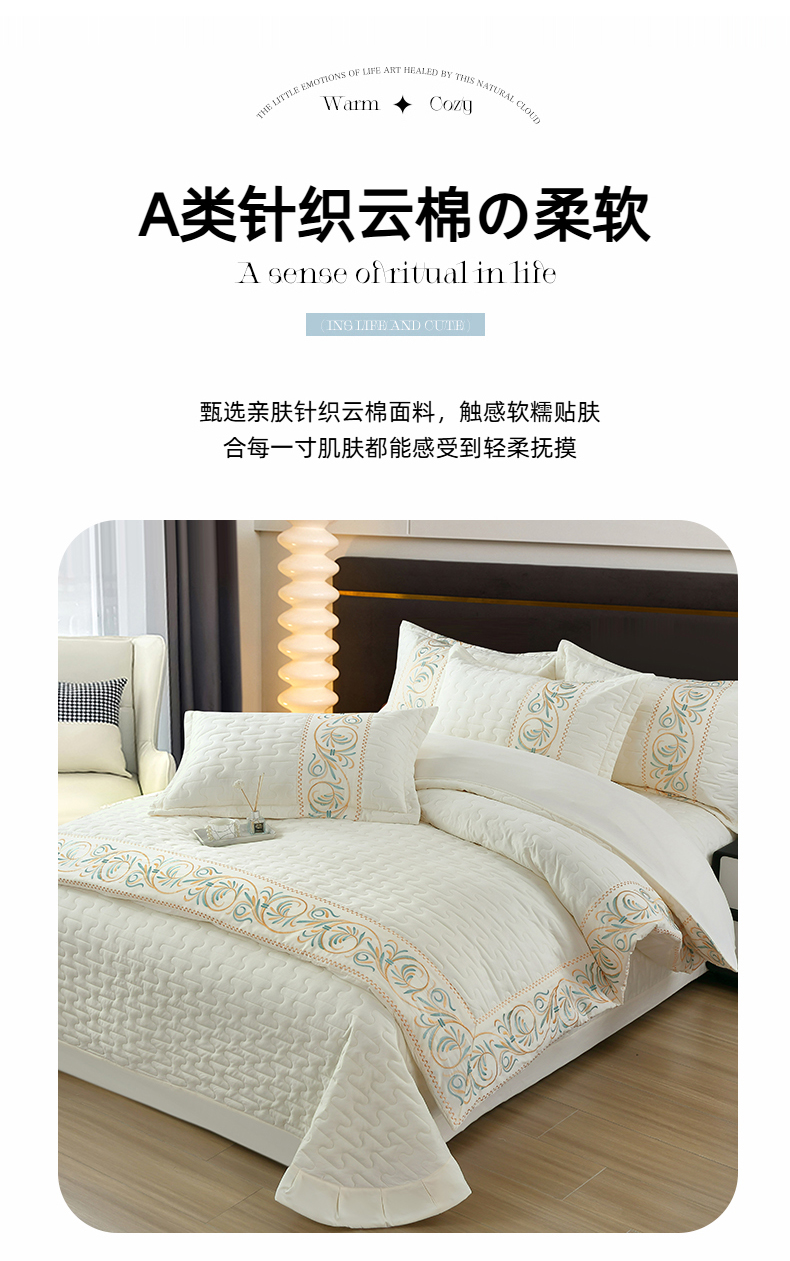 (总)OL家纺 2025春夏新款轻奢风针织云棉床盖夹绵防滑床盖款四件套