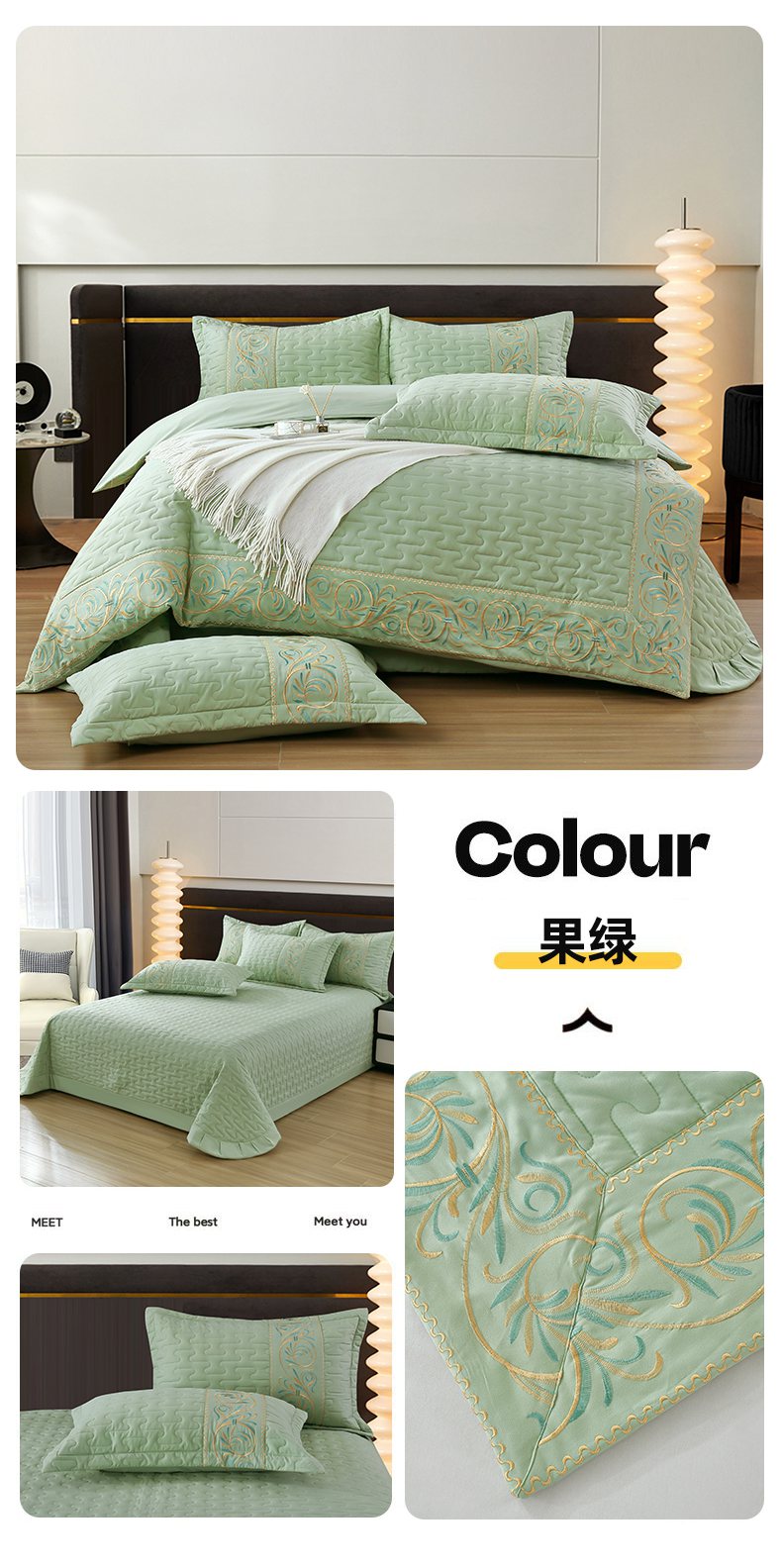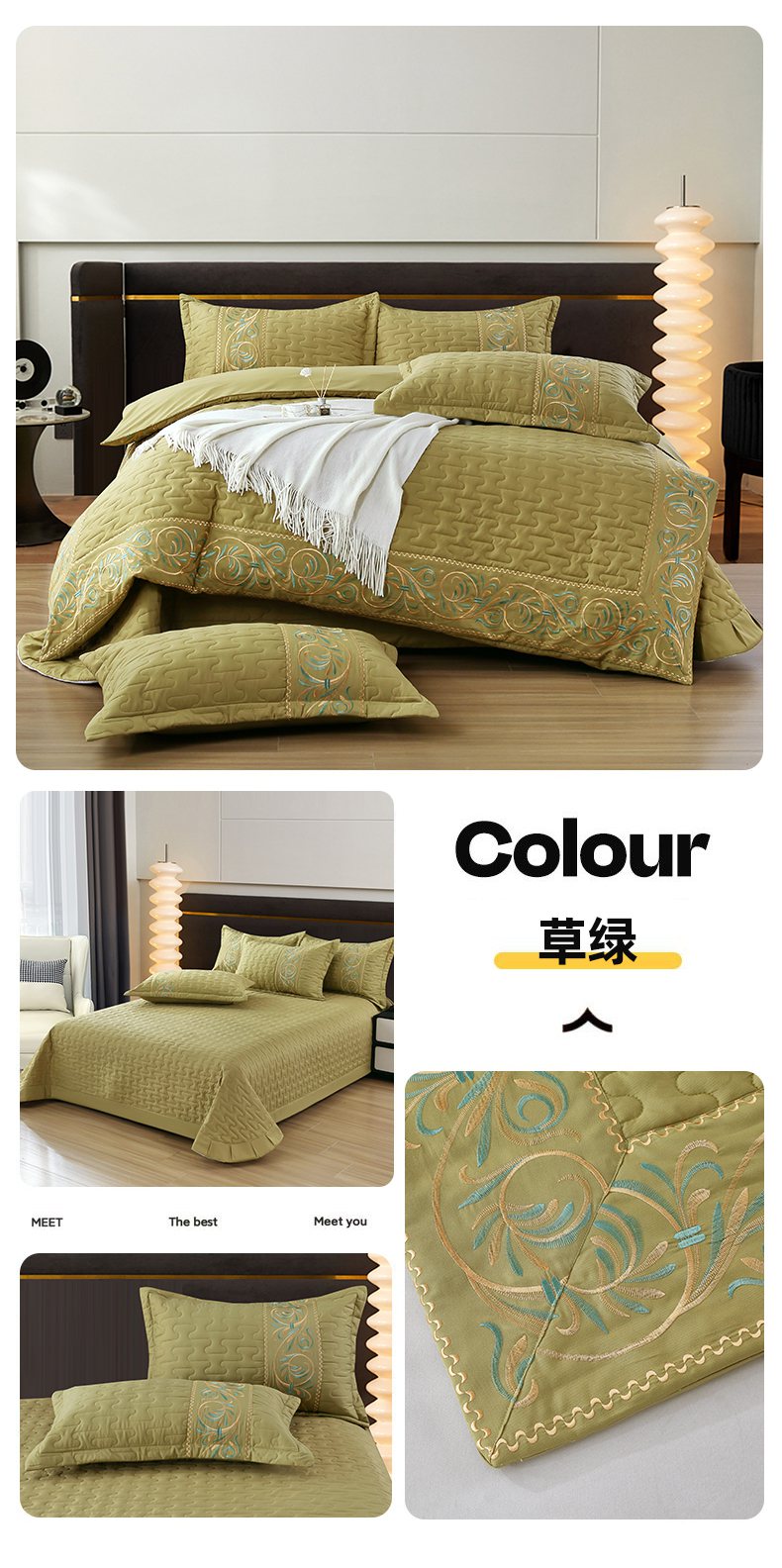 (总)ol 2022新款全棉纯色居家被套床盖枕套夹棉绗绣四件套,宾利蓝,高雅灰,海棠绿,梦幻紫,蜜糖桔,奶油黄,浅豆沙,浅米金,樱花粉