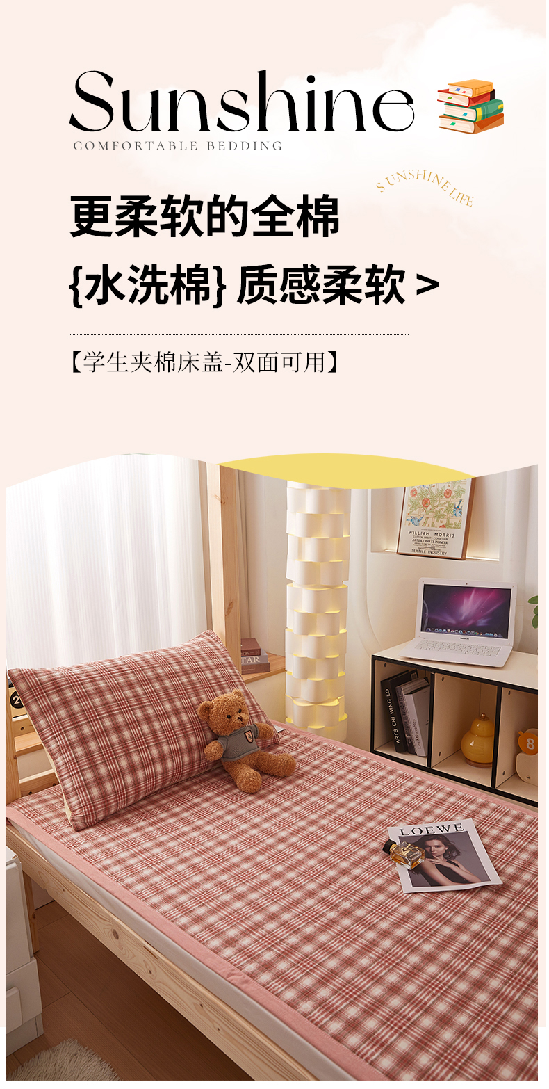 梦精灵家纺 2025新款全棉色织水洗棉四件套纯棉床盖被套罩枕套学生三件套宿舍单人床-床盖款 利奥红