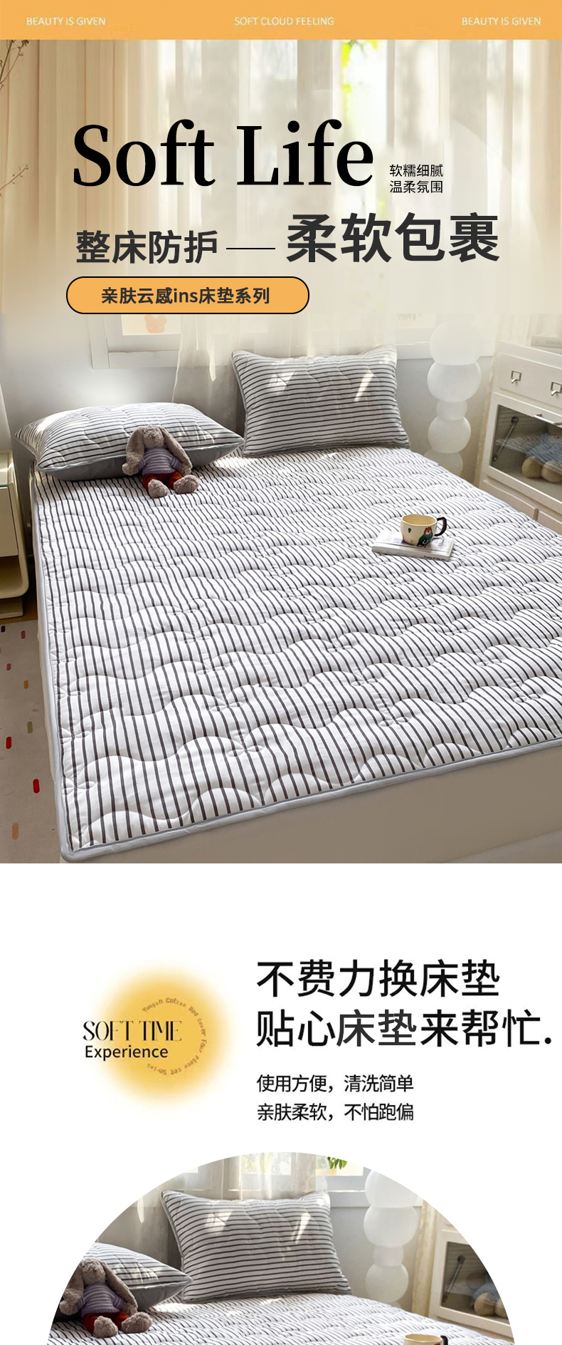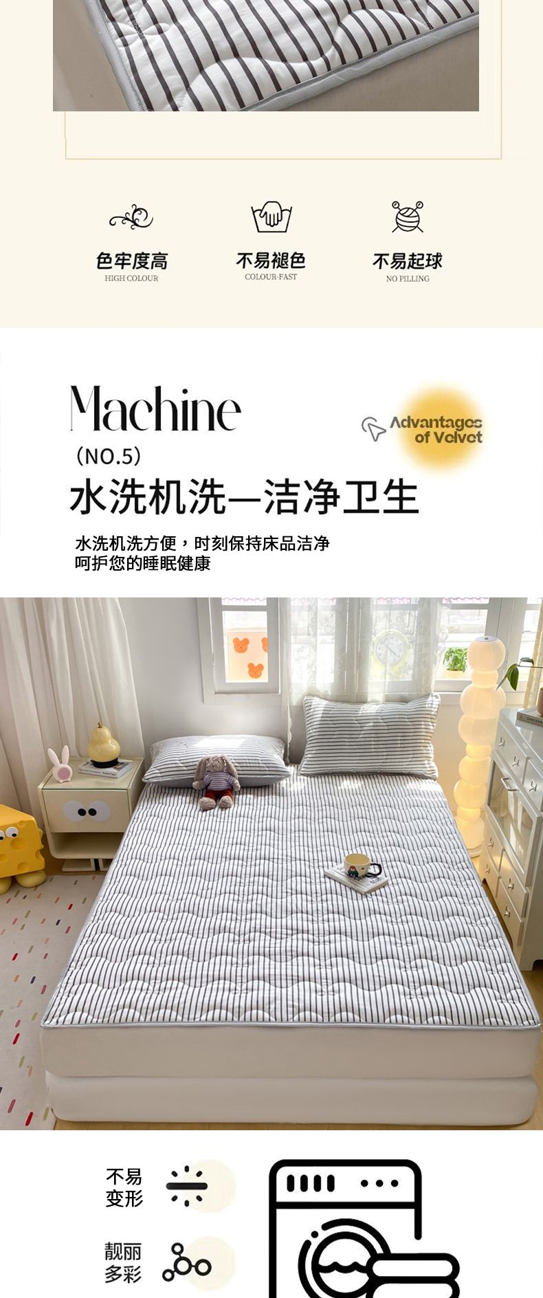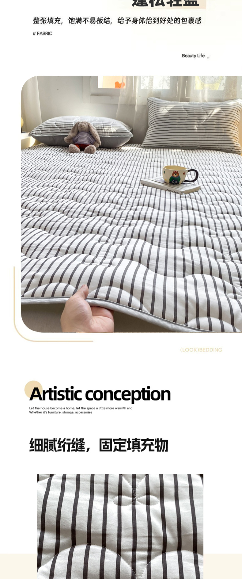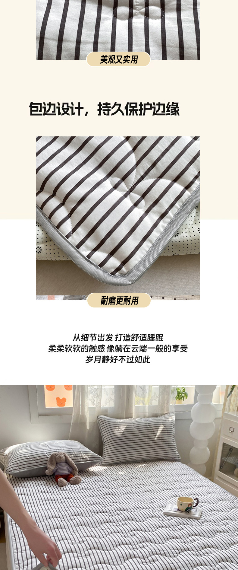 当前位置: 91家纺网 > 商品网购 > 床垫/床褥 > 普通床垫 > 麒东家纺 2025新款ins条纹水洗夹棉床垫 黑色