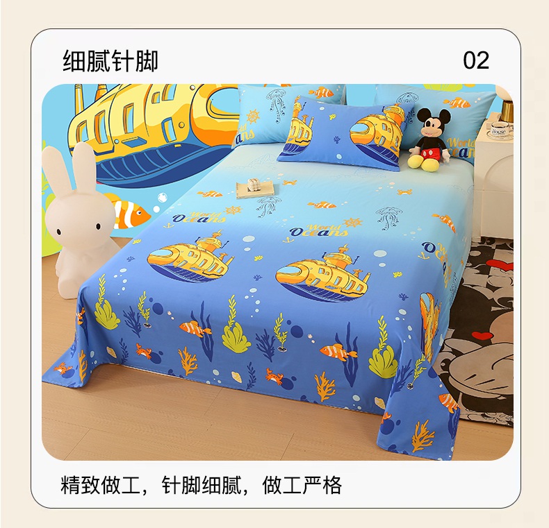 金鑫汇家纺 2025新款13070全棉好卖花型套件系列-单床单(花型更好卖,面料更厚实,退货率低) 海底探秘