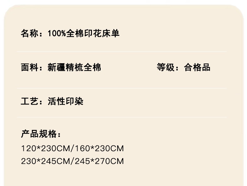 160*230cm单床单