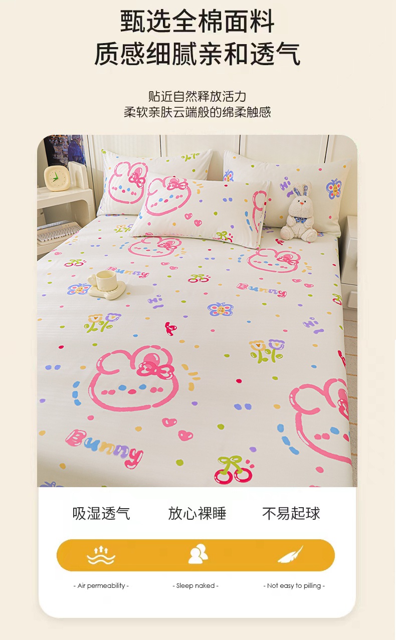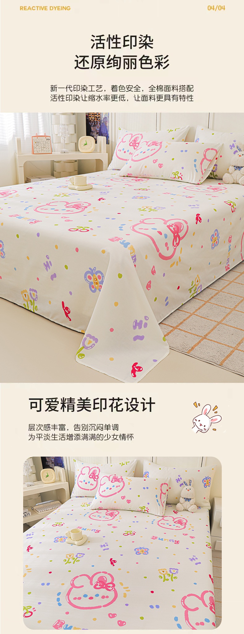 金鑫汇家纺 2025新款13070全棉好卖花型套件系列-单床单(花型更好卖,面料更厚实,退货率低) 奇趣小兔