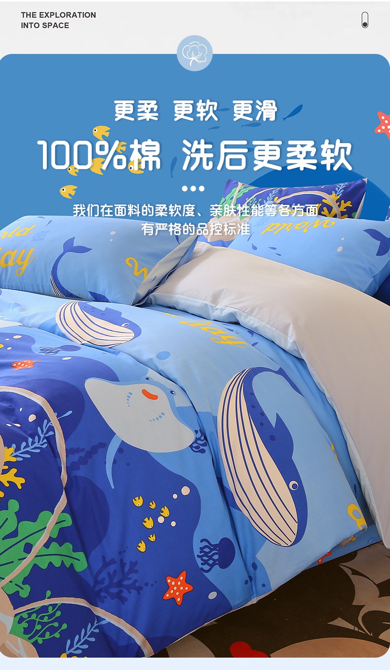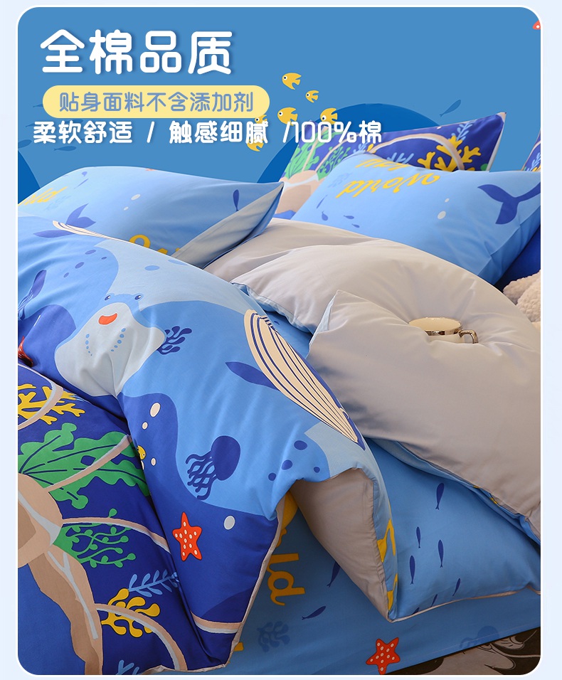 金鑫汇家纺 2025新款13070全棉好卖花型套件系列-单被套 海族馆