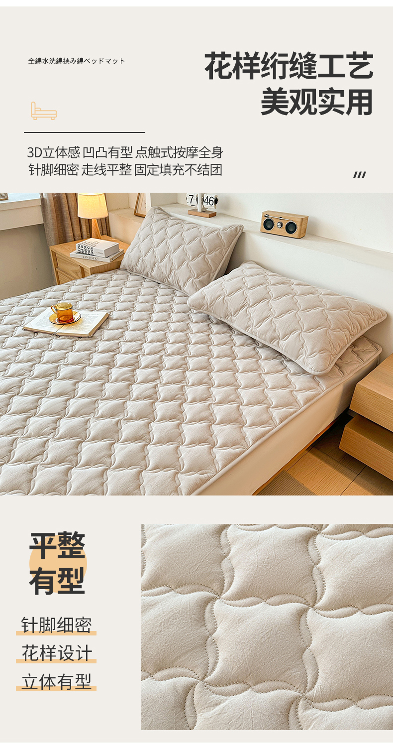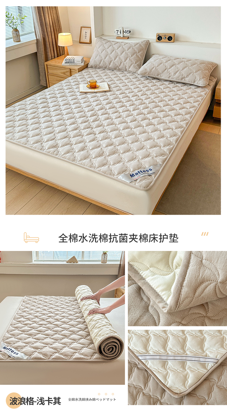 当前位置: 91家纺网 > 商品网购 > 床垫/床褥 > 普通床垫 > 3C 2025新款全棉水洗棉抗菌夹棉床垫褥子床护垫 波浪格-浅卡其