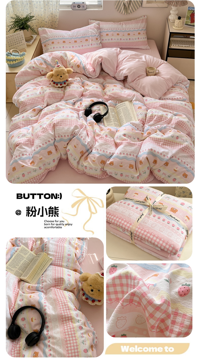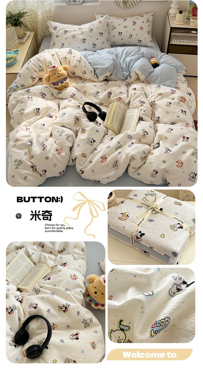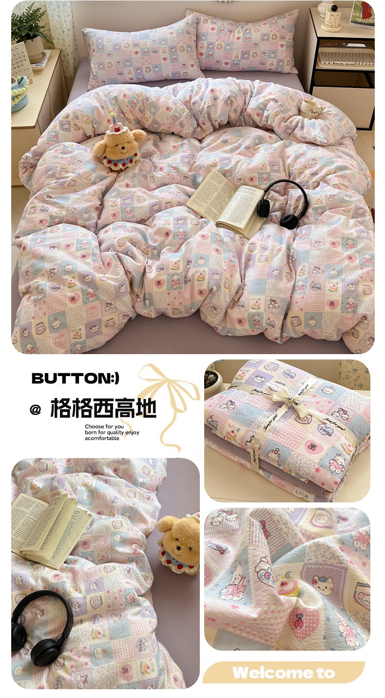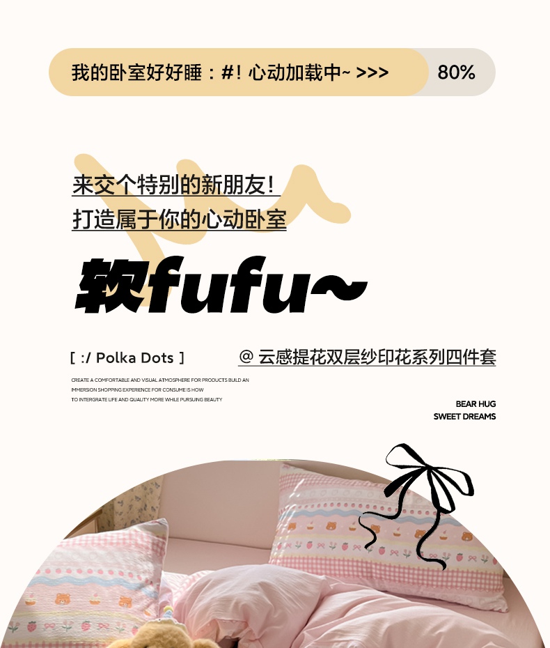 当前位置: 91家纺网 > 商品网购 > 床品套件 > 四件套 > 双层纱四件套 > 玉海棠家纺 2025新款云感提花双层纱印花系列四件套-场景一 布丁狗