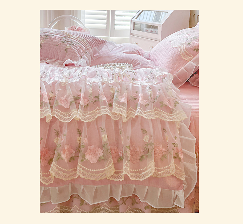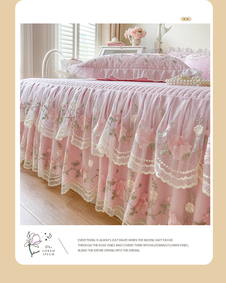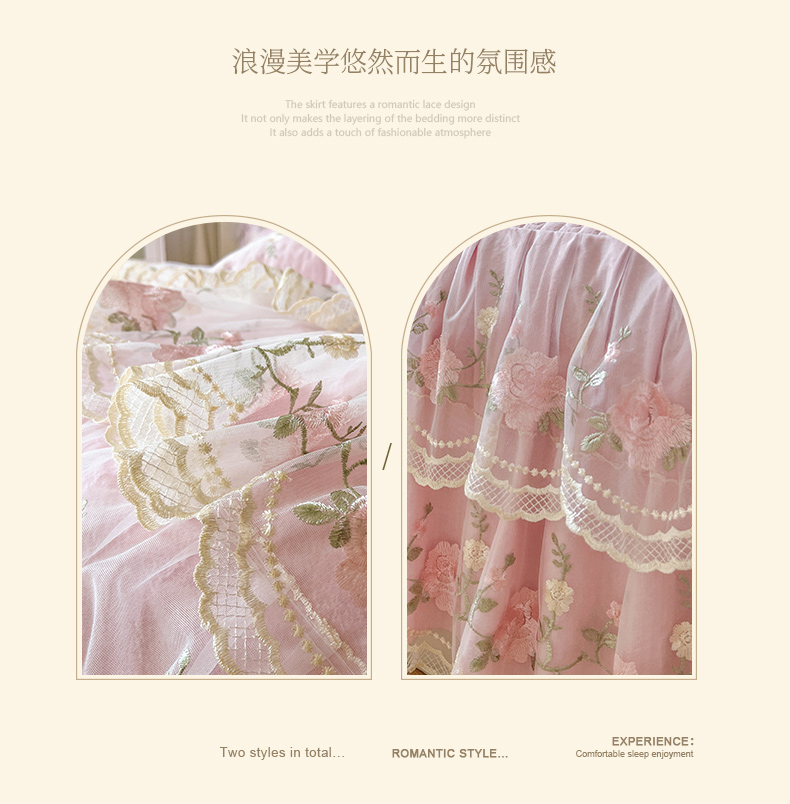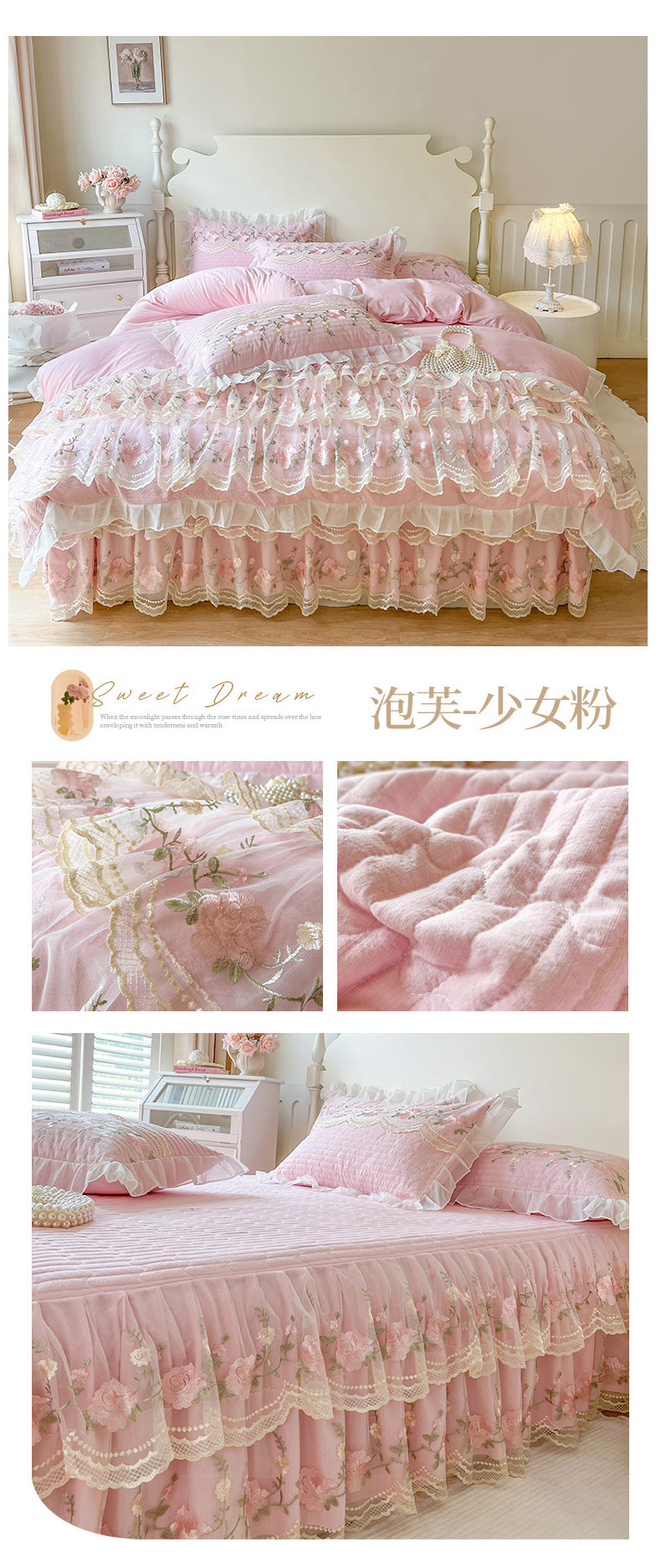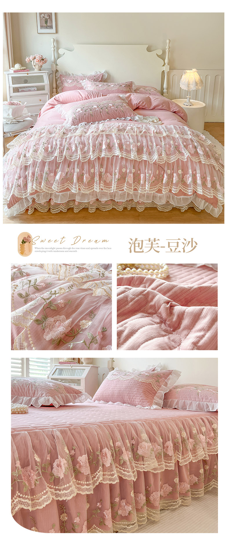 当前位置: 91家纺网 > 商品网购 > 床品套件 > 四件套 > 其它四件套 > 恋尚 2025新款木棉蕾丝床裙四件套-泡芙 泡芙-少女粉