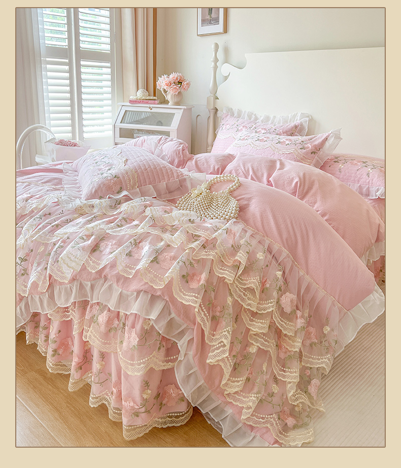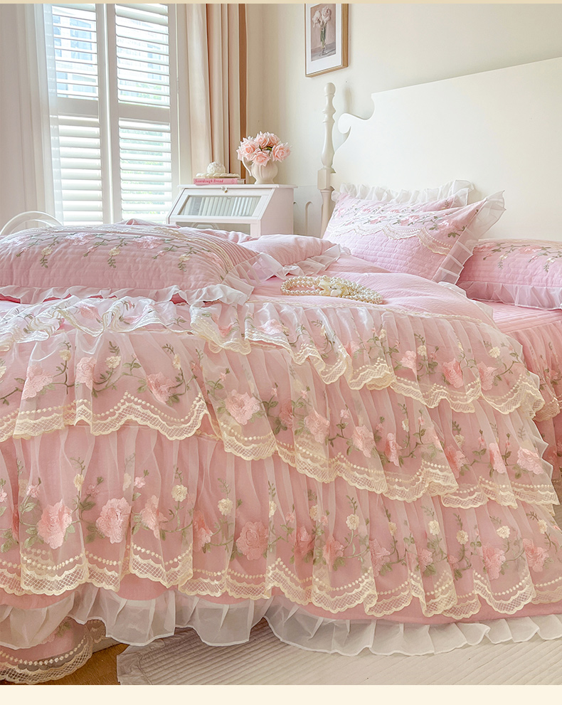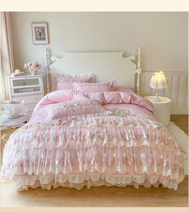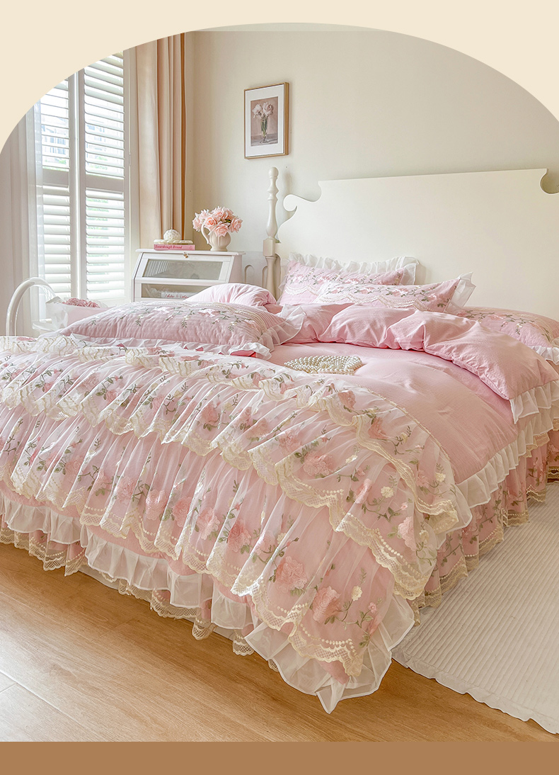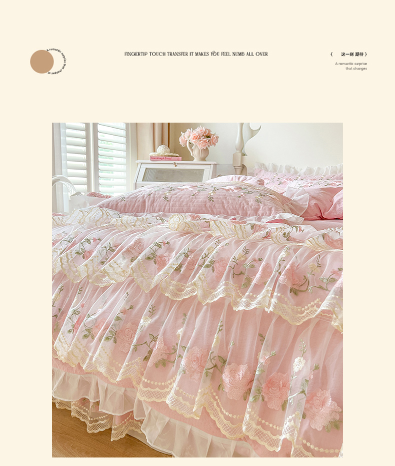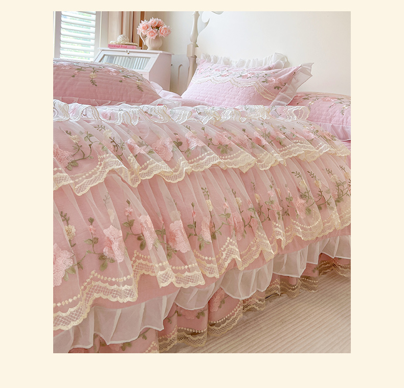 当前位置: 91家纺网 > 商品网购 > 床品套件 > 四件套 > 其它四件套 > 恋尚 2025新款木棉蕾丝床裙四件套-泡芙 泡芙-少女粉