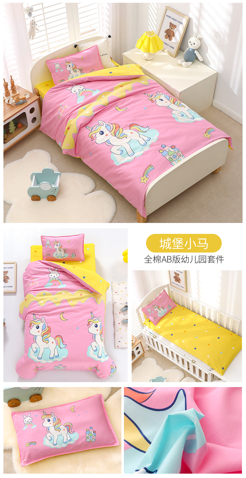 当前位置: 91家纺网 > 商品网购 > 床品套件 > 多件套 > 多件套 > 2025年新款幼儿园全棉被子三件套宝宝入园纯棉六件套被褥午睡被套城堡小马