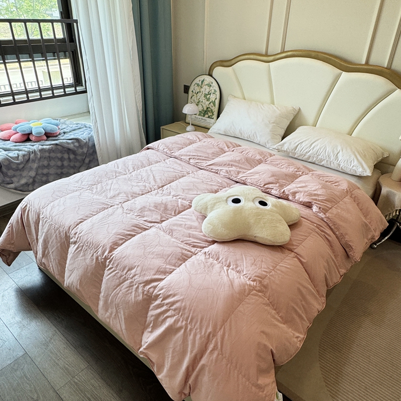 (总)静若居 2025新款高端提花羽绒被鸭绒被贡缎提花单层羽绒被壳,飘颜粉,飘金色,飘高级灰