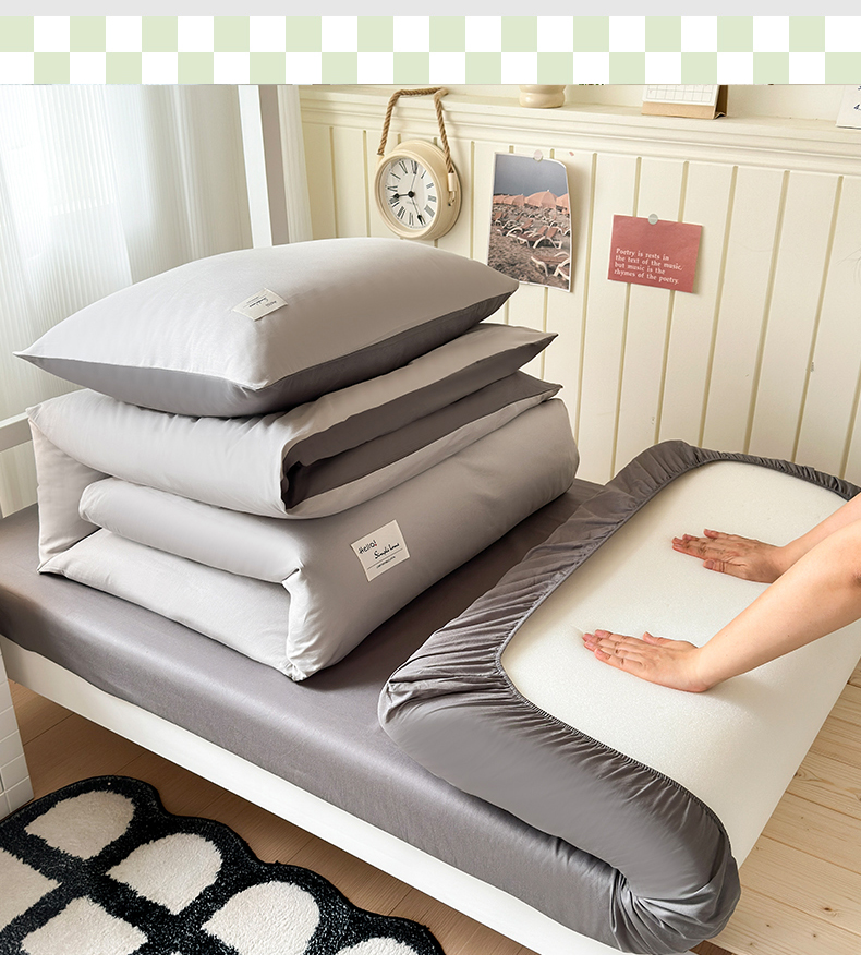 当前位置: 91家纺网 > 商品网购 > 床品套件 > 三件套 > 曼之夏 2025新款全棉拼色纯色宿舍学生三件套 米灰+高级灰