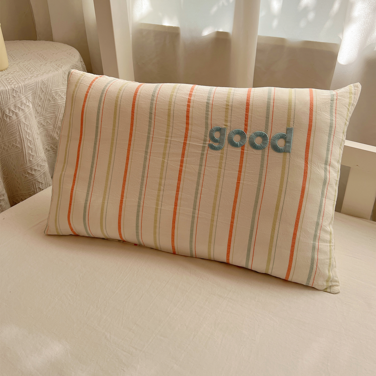 商品名称:丽涵家纺 2025新款全棉纯棉色织水洗棉刺绣婴幼儿童枕套枕套单件单枕套-儿童款 尚格-橘