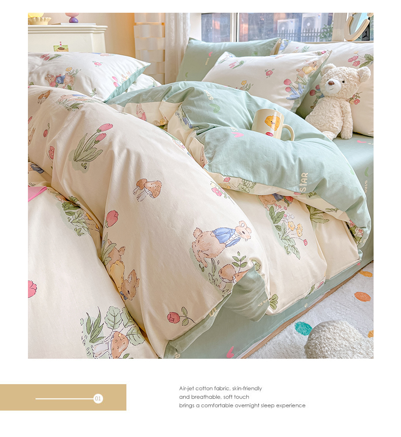 当前位置: 91家纺网 > 商品网购 > 床品套件 > 四件套 > 全棉普通四件套 > 麦伦家居 2025春夏新款全棉纯棉斜纹40s13372系列-小清新卡通 蘑菇屋