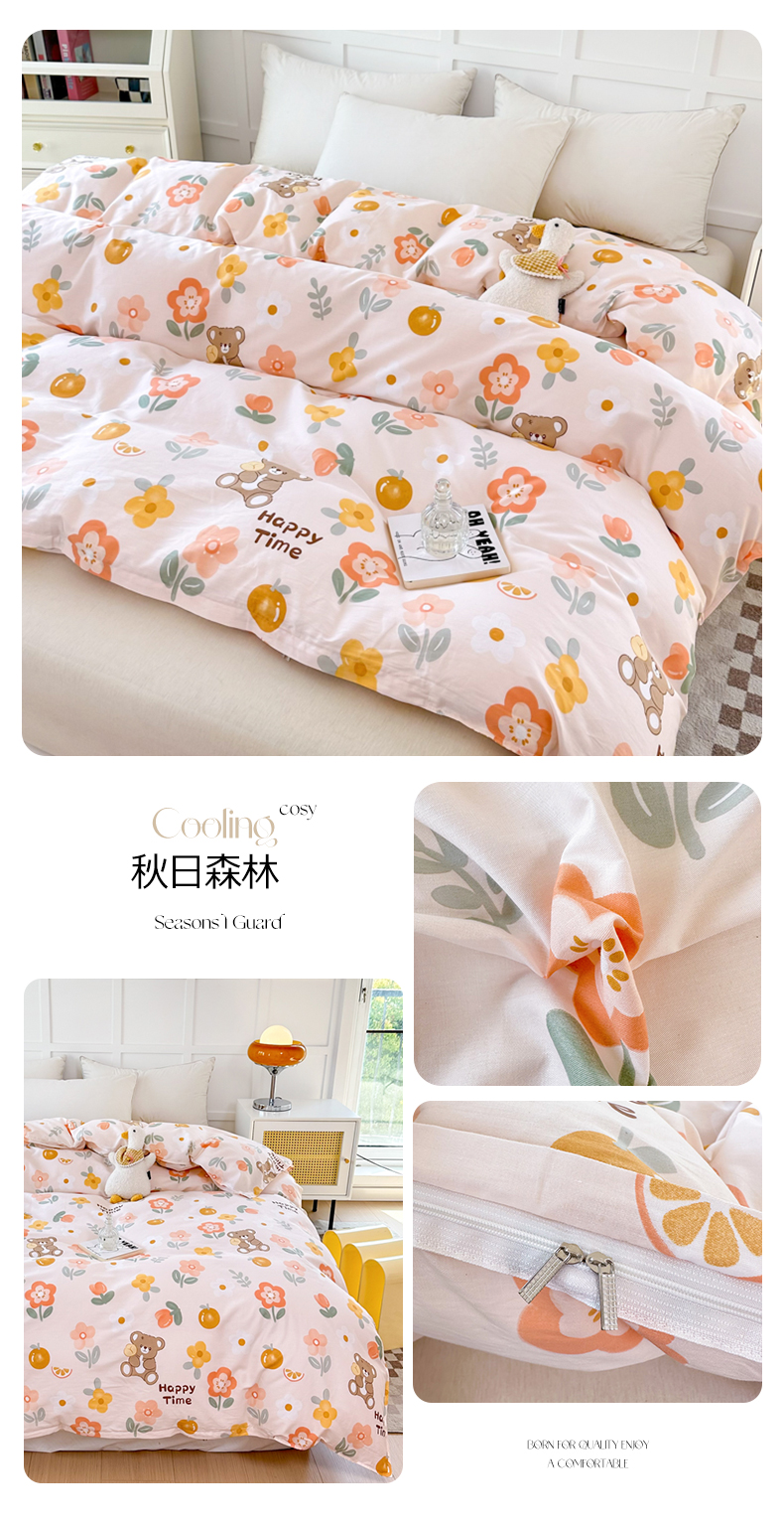 小叮当家纺仓储工厂店 (爆款花型 长期款 不断货)2025年新款小清新印花条纹卡通花卉纯棉全棉单品系列--单被套 花果