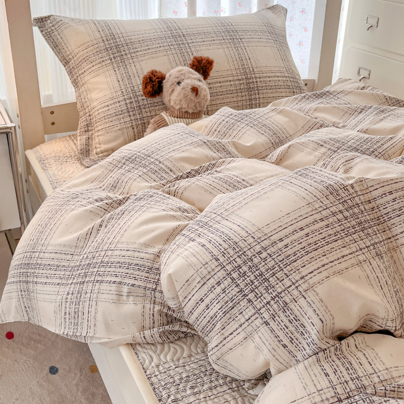 (总)暖居 2026年新款全棉色织水洗棉高温砂洗床盖三件套四件套,英式格纹,复古红,可可灰,纽约格红,森林咖,云曲