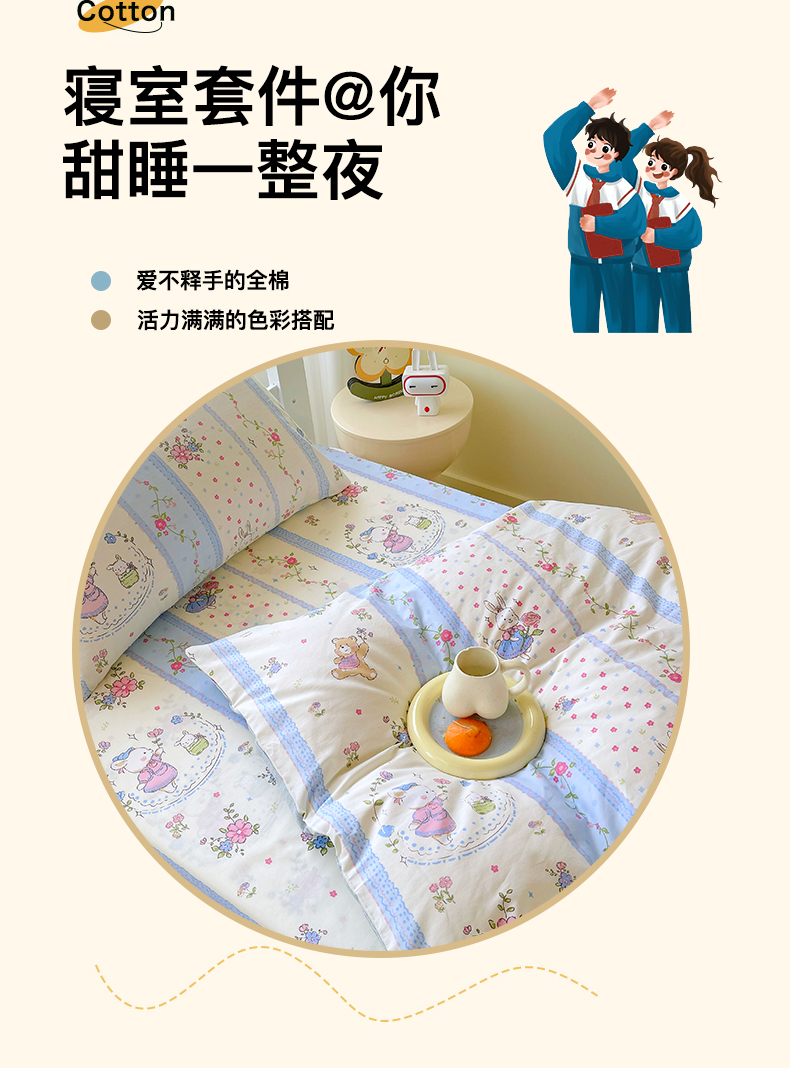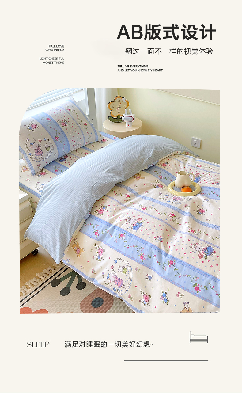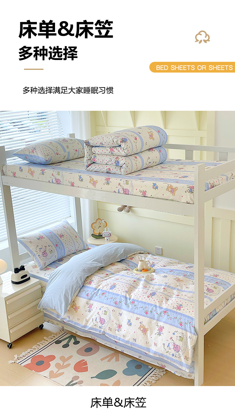 当前位置: 91家纺网 > 商品网购 > 床品套件 > 三件套 > 金鑫汇家纺 2025新款全棉学生宿舍三件套四件套系列 梦蝶