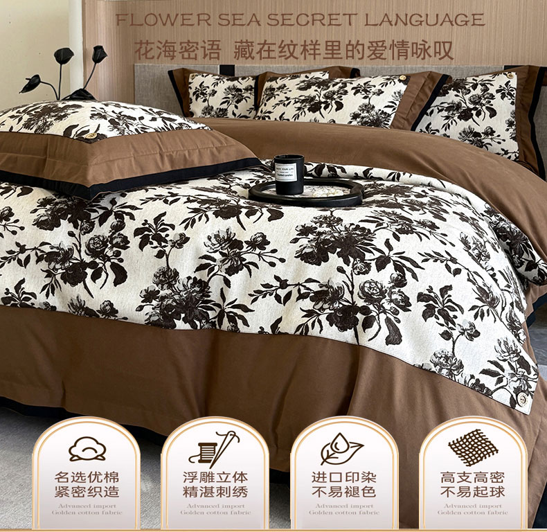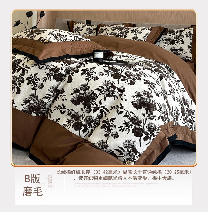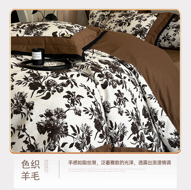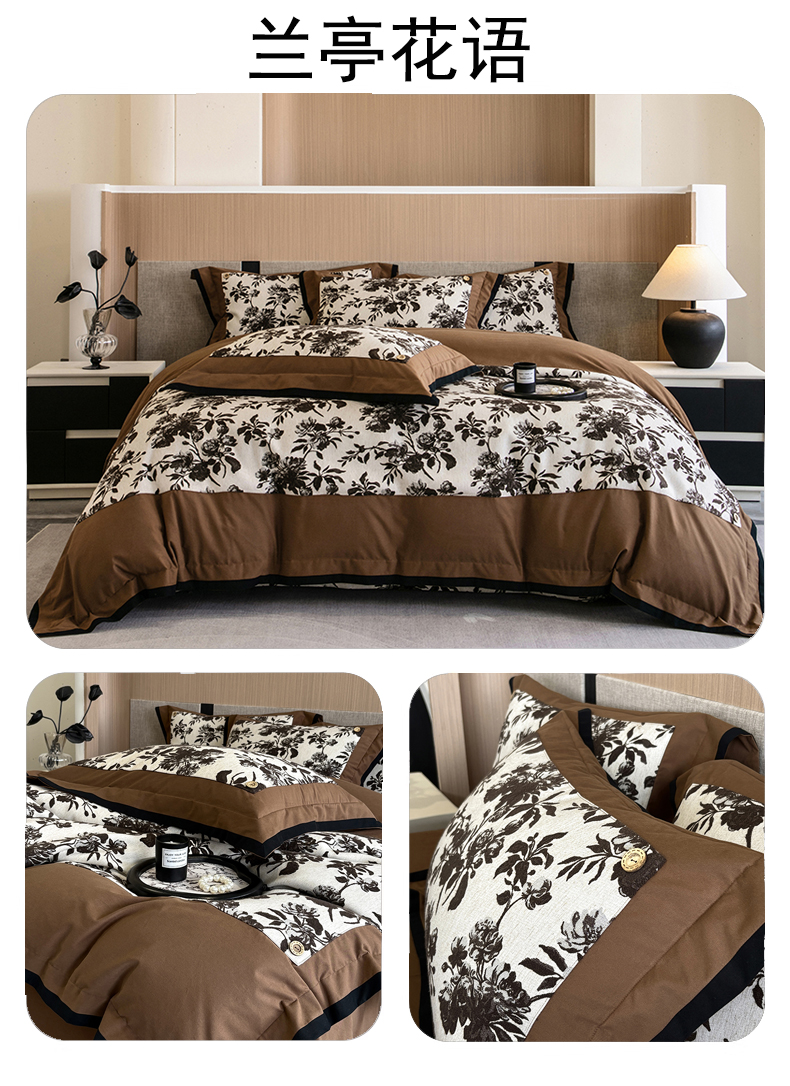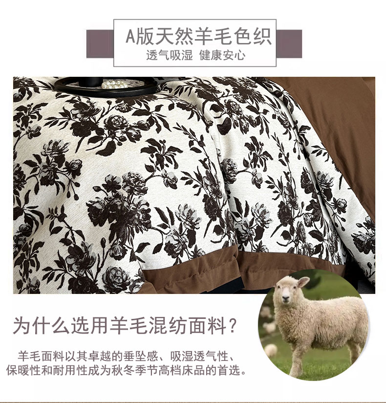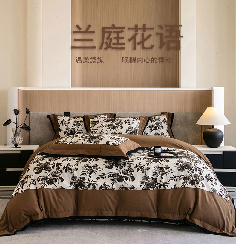 商品名称:蒂爵 2025新款A版羊毛混纺、b版新疆长绒棉时尚秋冬四件套-兰亭花语 兰亭花语-咖