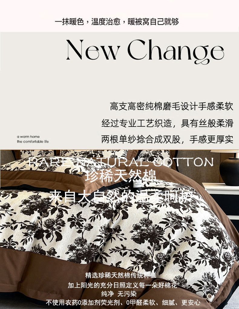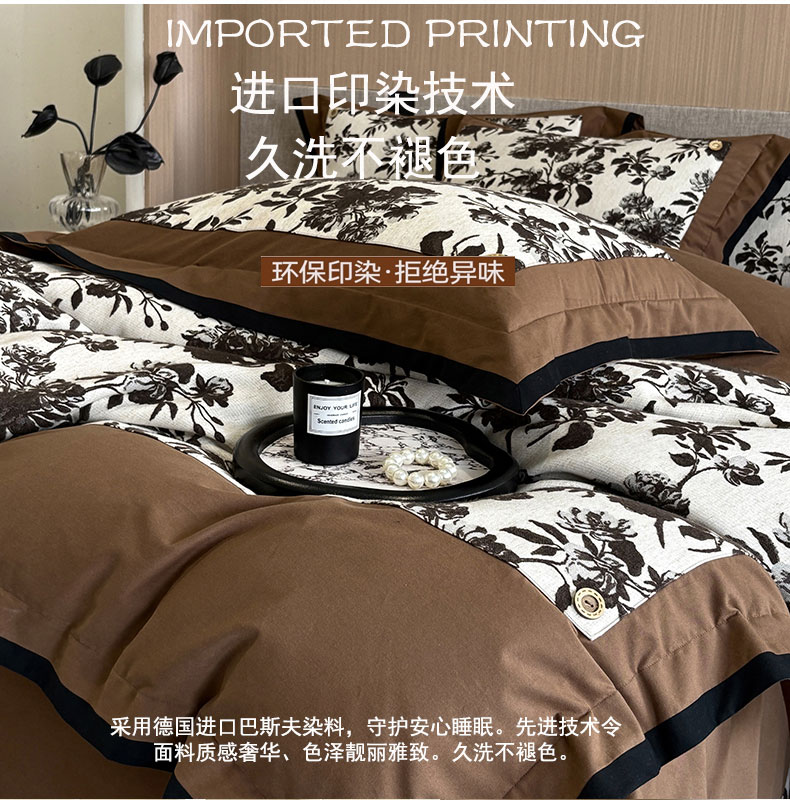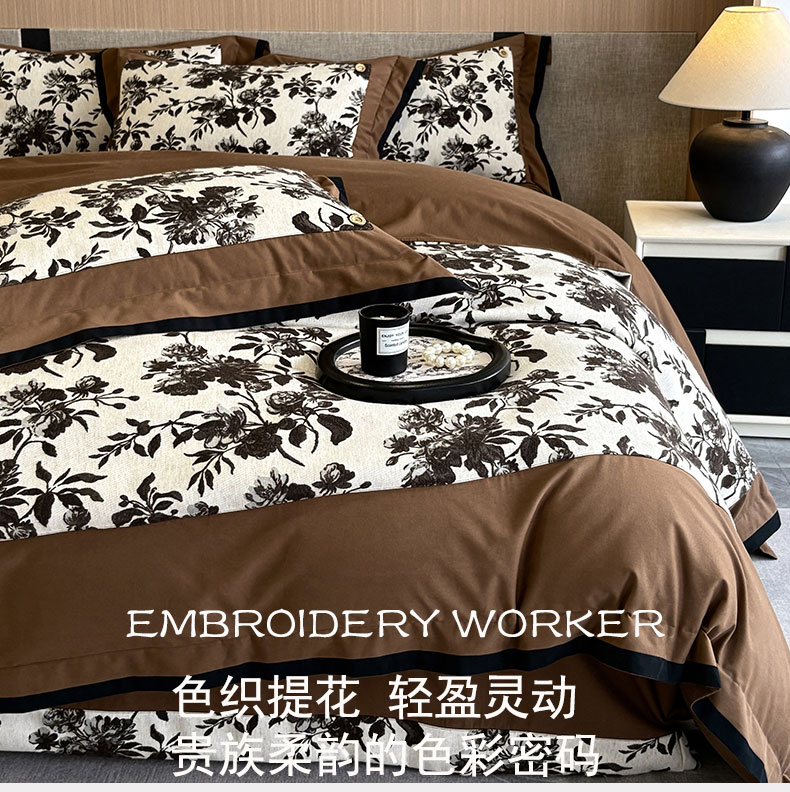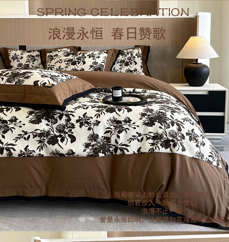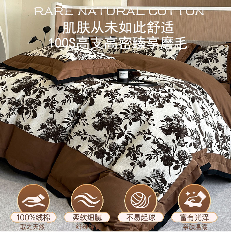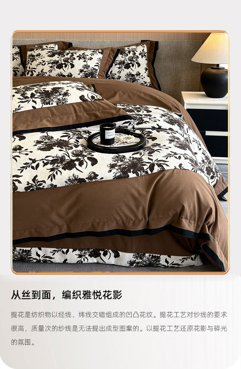 商品名称:蒂爵 2025新款A版羊毛混纺、b版新疆长绒棉时尚秋冬四件套-兰亭花语 兰亭花语-咖