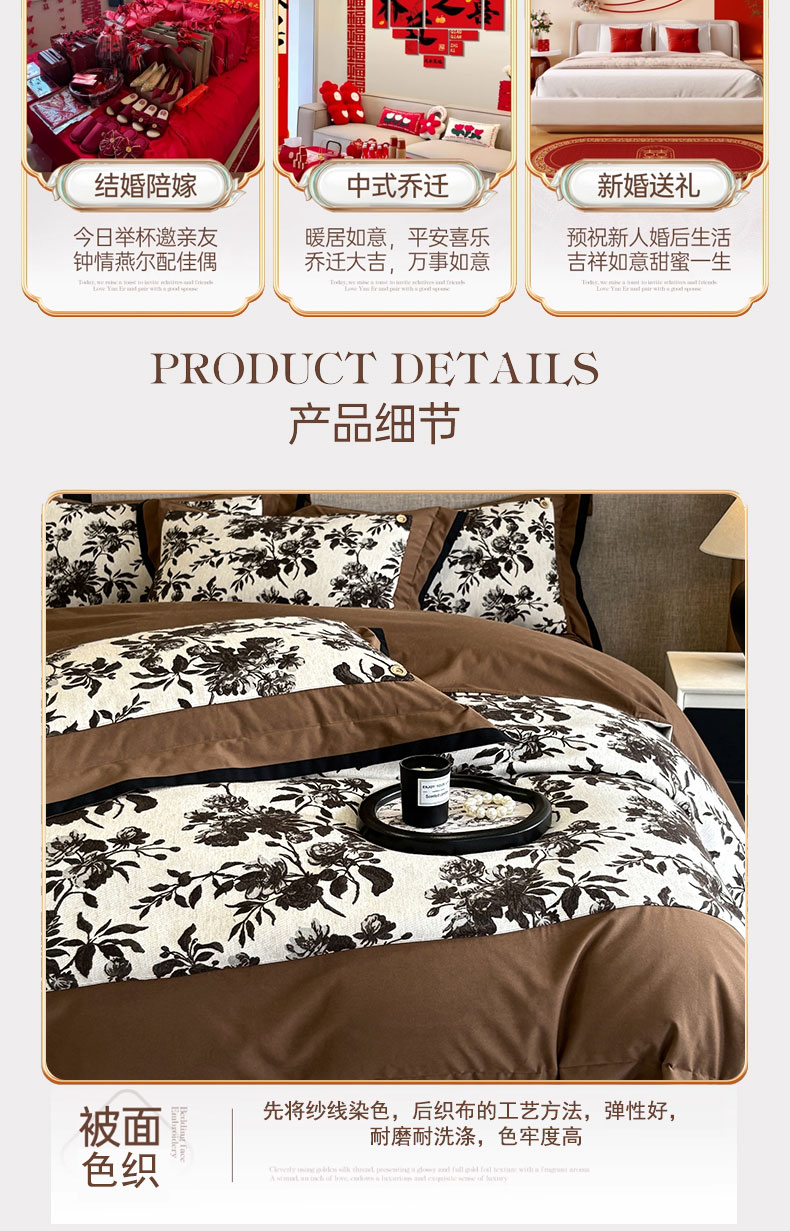 (总)蒂爵 2025新款婚庆长绒棉时尚小红书爆款刺绣婚庆四件套多件套-提花款,欢天喜地,玫瑰之恋,喜福临门,喜上眉梢,幸福嫁到