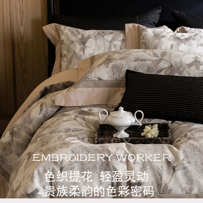 (总)蒂爵 全棉纯棉全棉长绒棉肌理纹磨毛绣花四件套洛卡,洛卡-灰,洛卡-咖,洛卡-绿