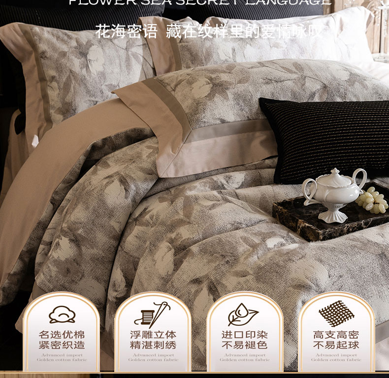 (总)蒂爵 全棉纯棉长绒棉大绣花婚庆四件套,家业兴旺,缘来是你,百花贺喜,玫瑰爱恋,玫瑰爱恋金,情意绵绵