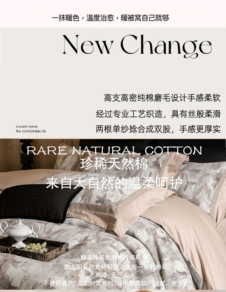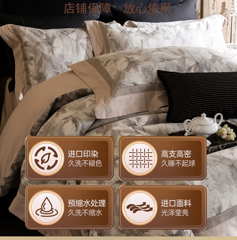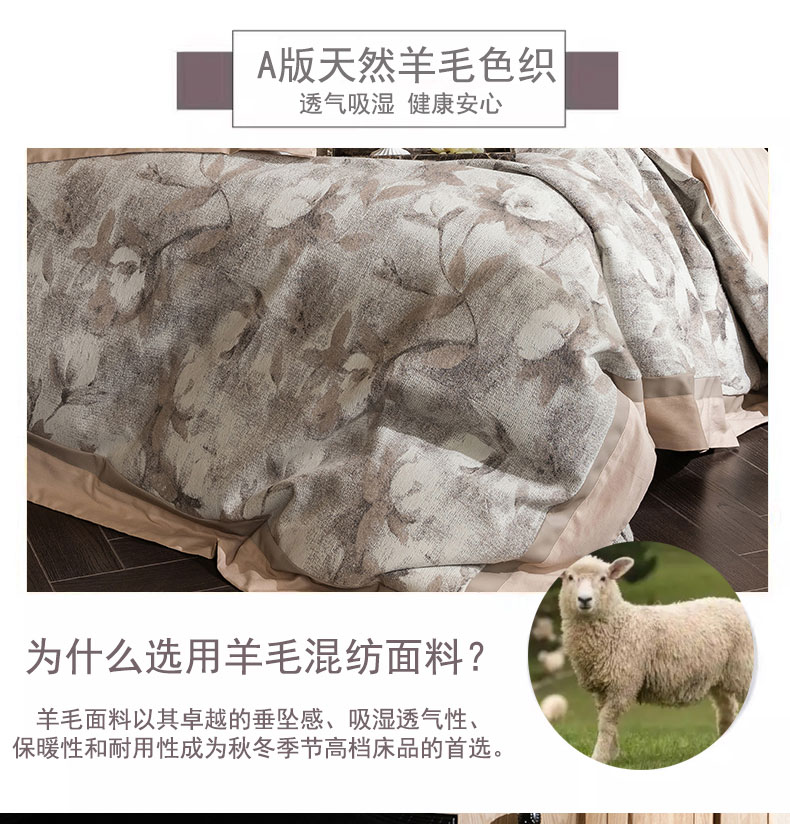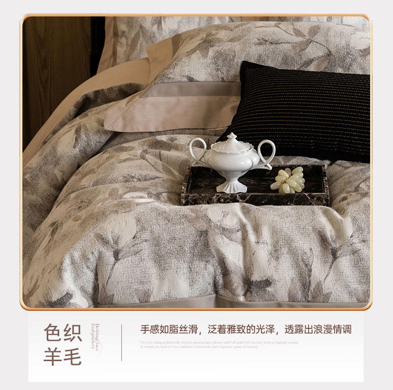 商品名称:蒂爵 2025新款A版羊毛混纺、b版新疆长绒棉时尚秋冬四件套-叶雨 叶雨-咖