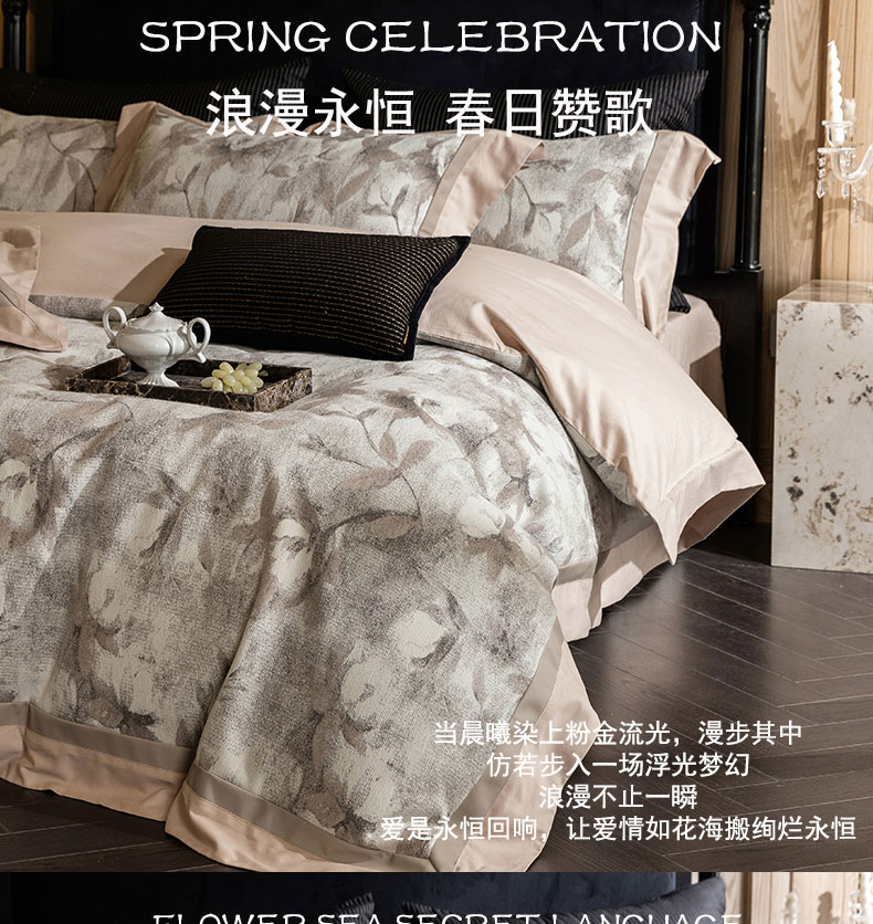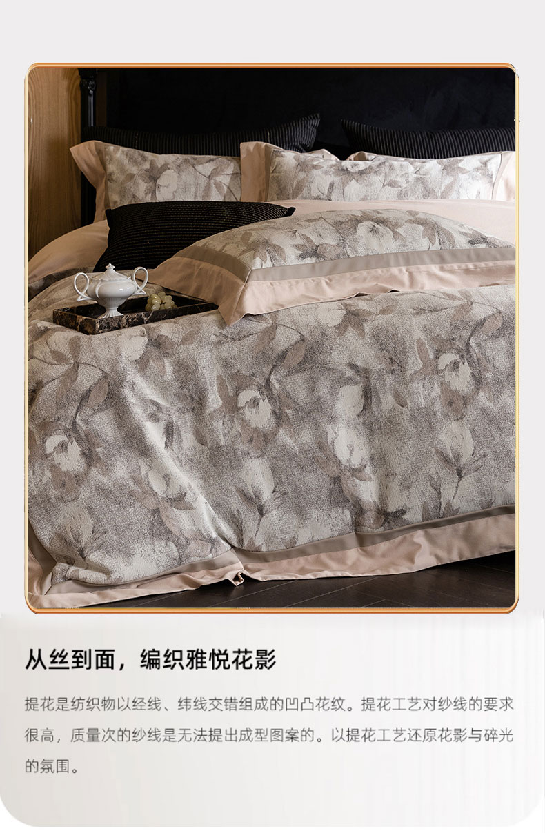 (总)蒂爵 2025新款居家长绒棉提花四件套南法佳人系列,薄荷绿,贝壳粉,高级灰,香槟金