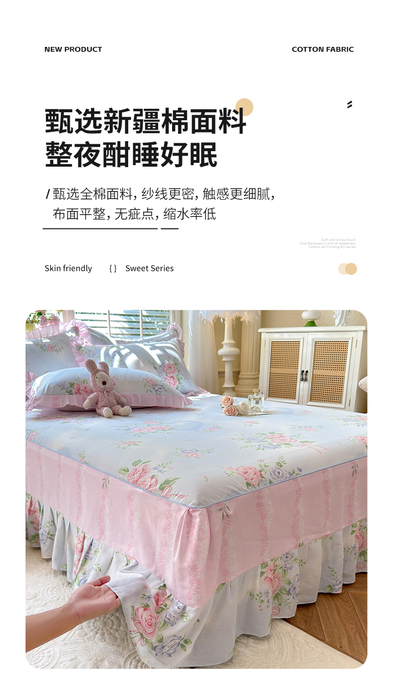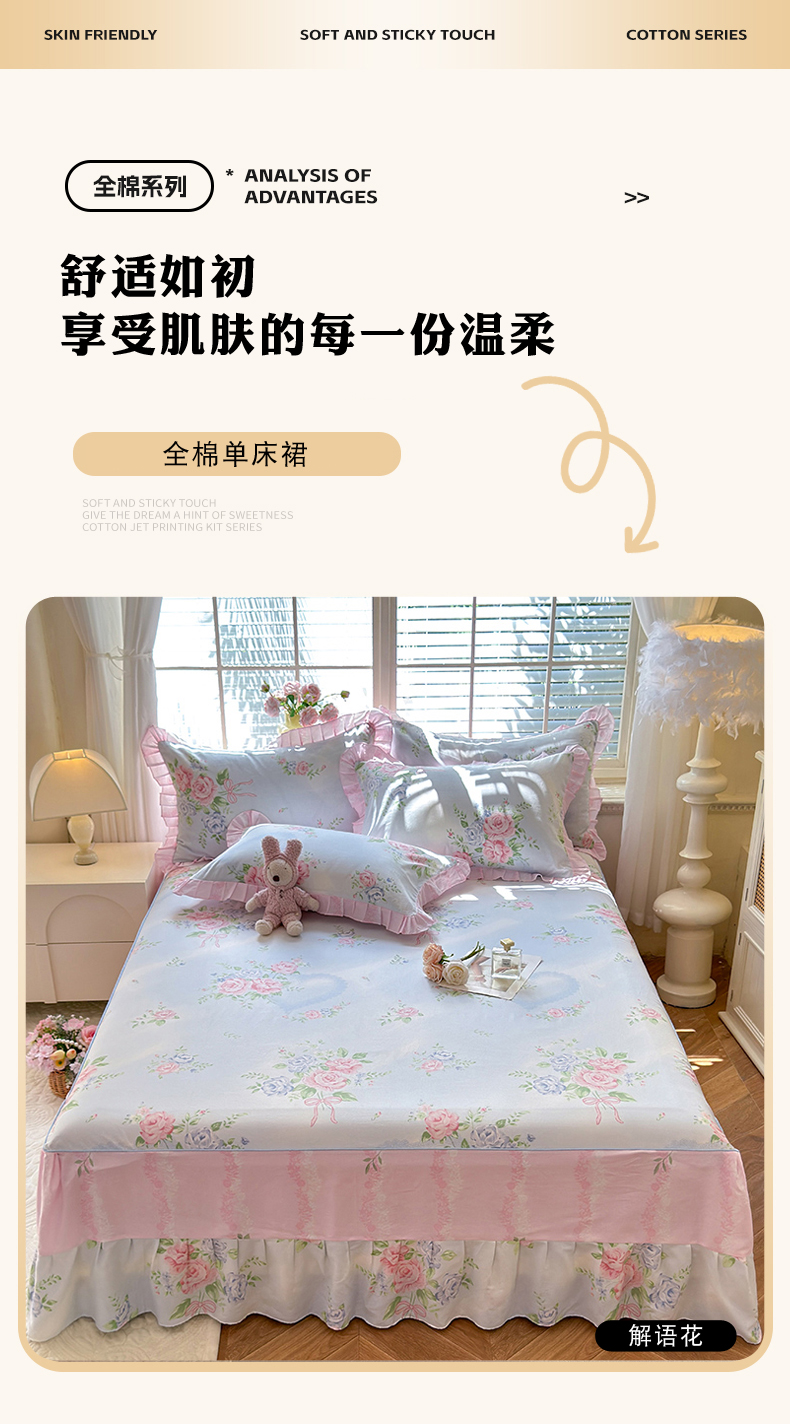(总)美达家纺 2025新款全棉AB版单层床裙,解语花,南湘,沁雨花叶,悦棠